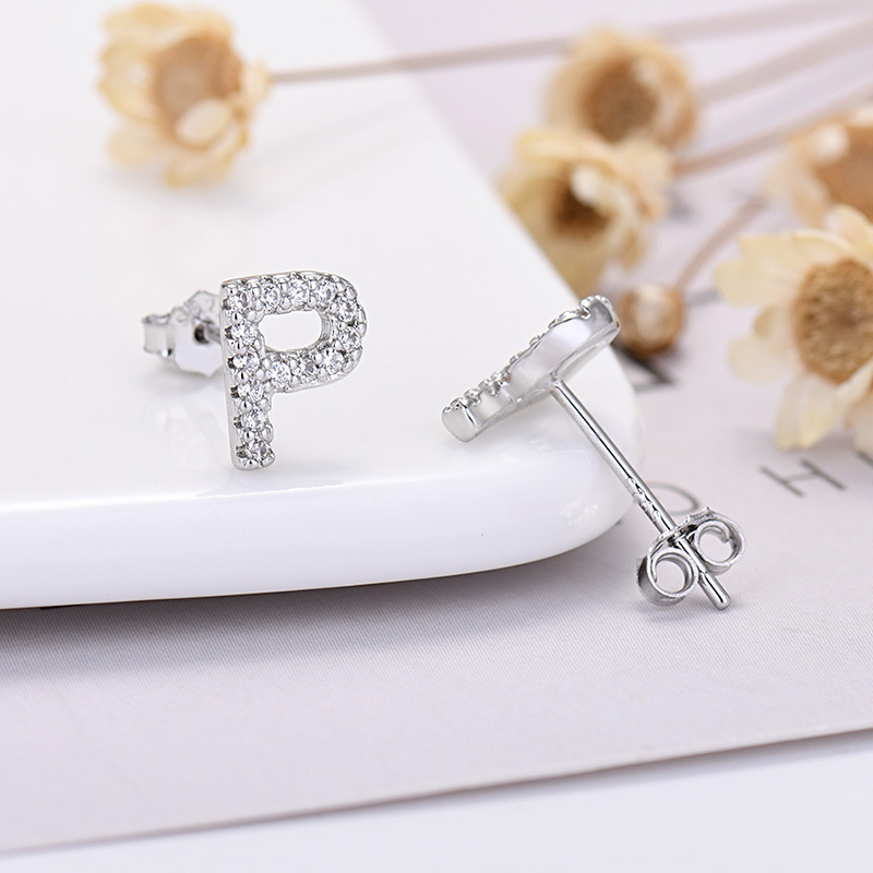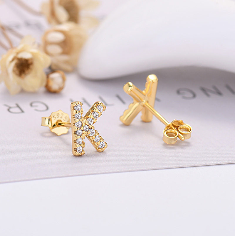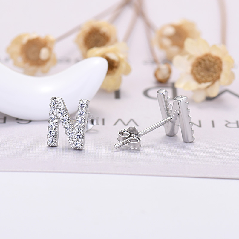 26-letter Zircon Earrings Uppercase Letters