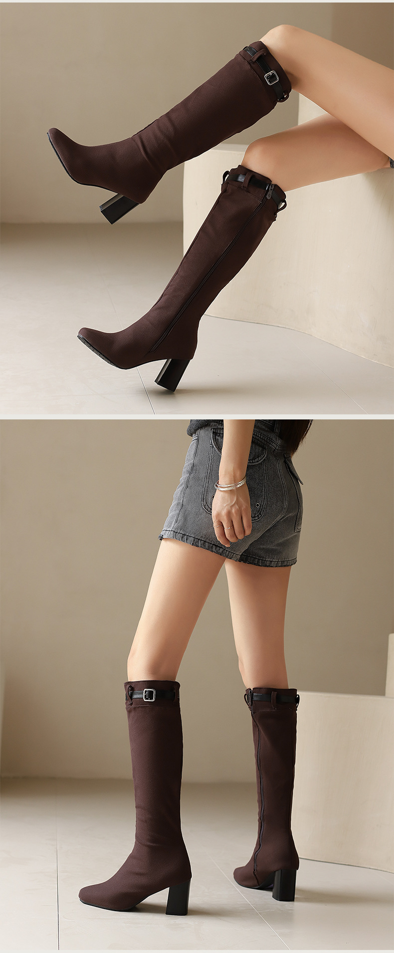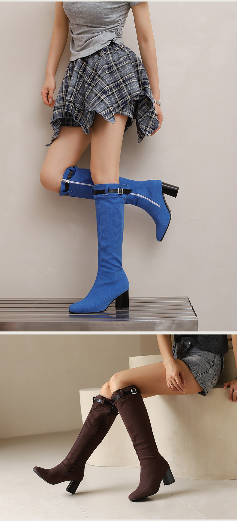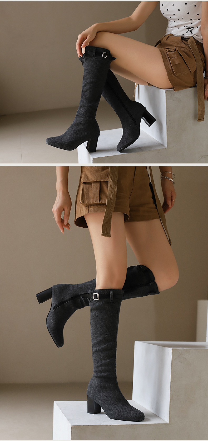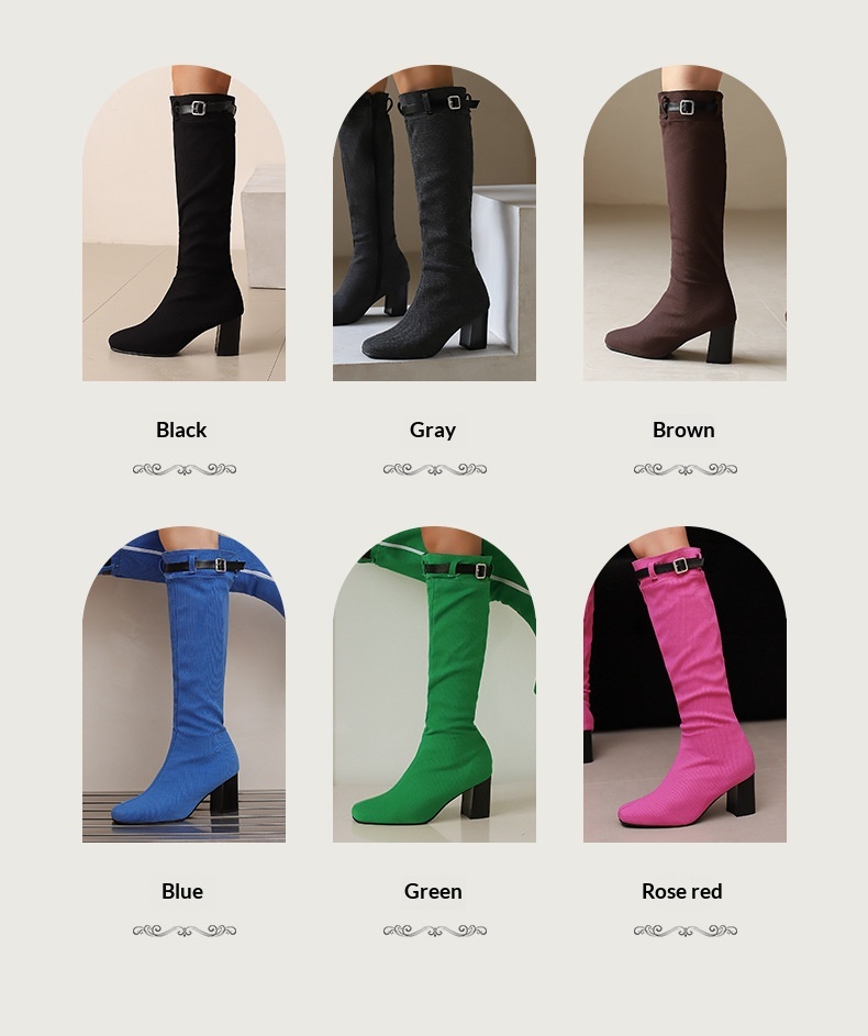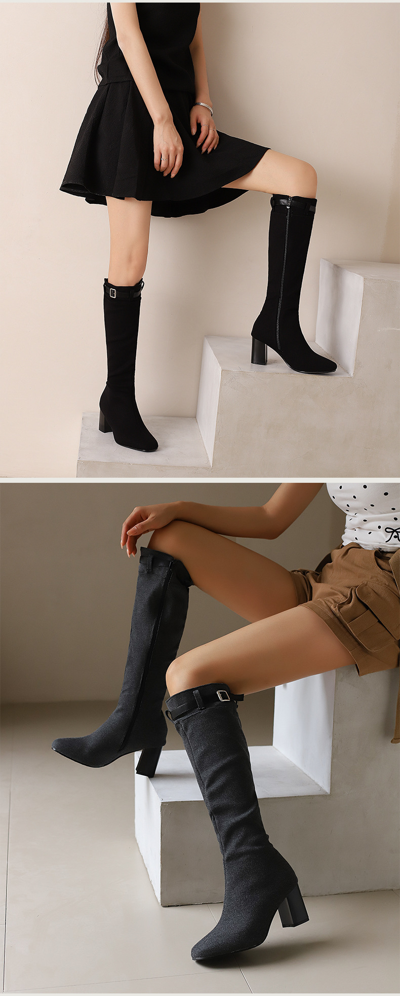 Chunky-heeled Over-the-knee Boots With Color-block Leather Belt Buckle