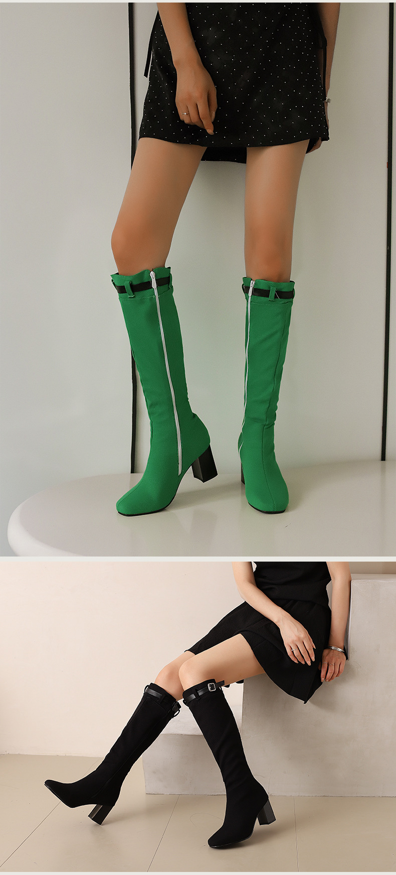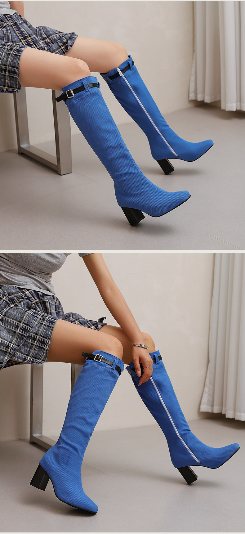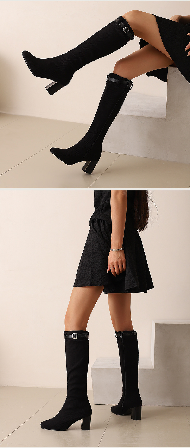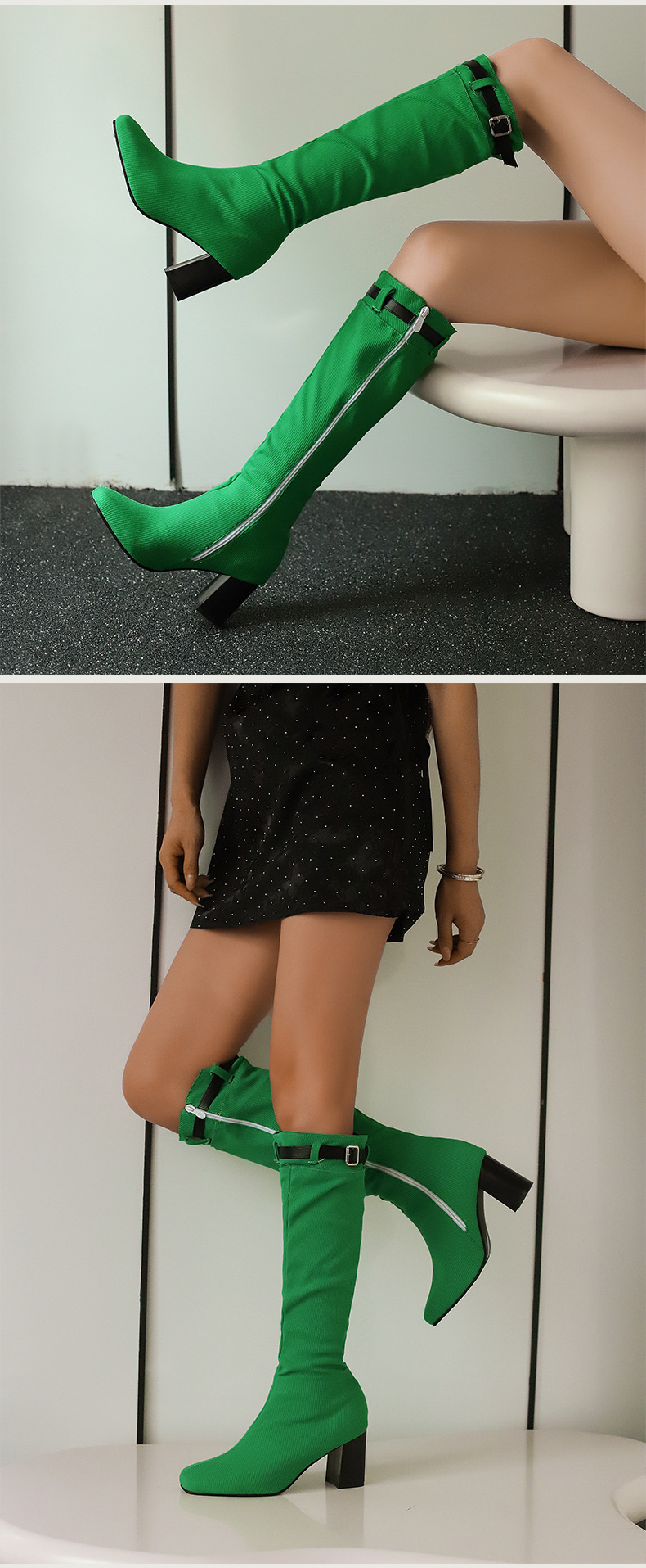 Chunky-heeled Over-the-knee Boots With Color-block Leather Belt Buckle
