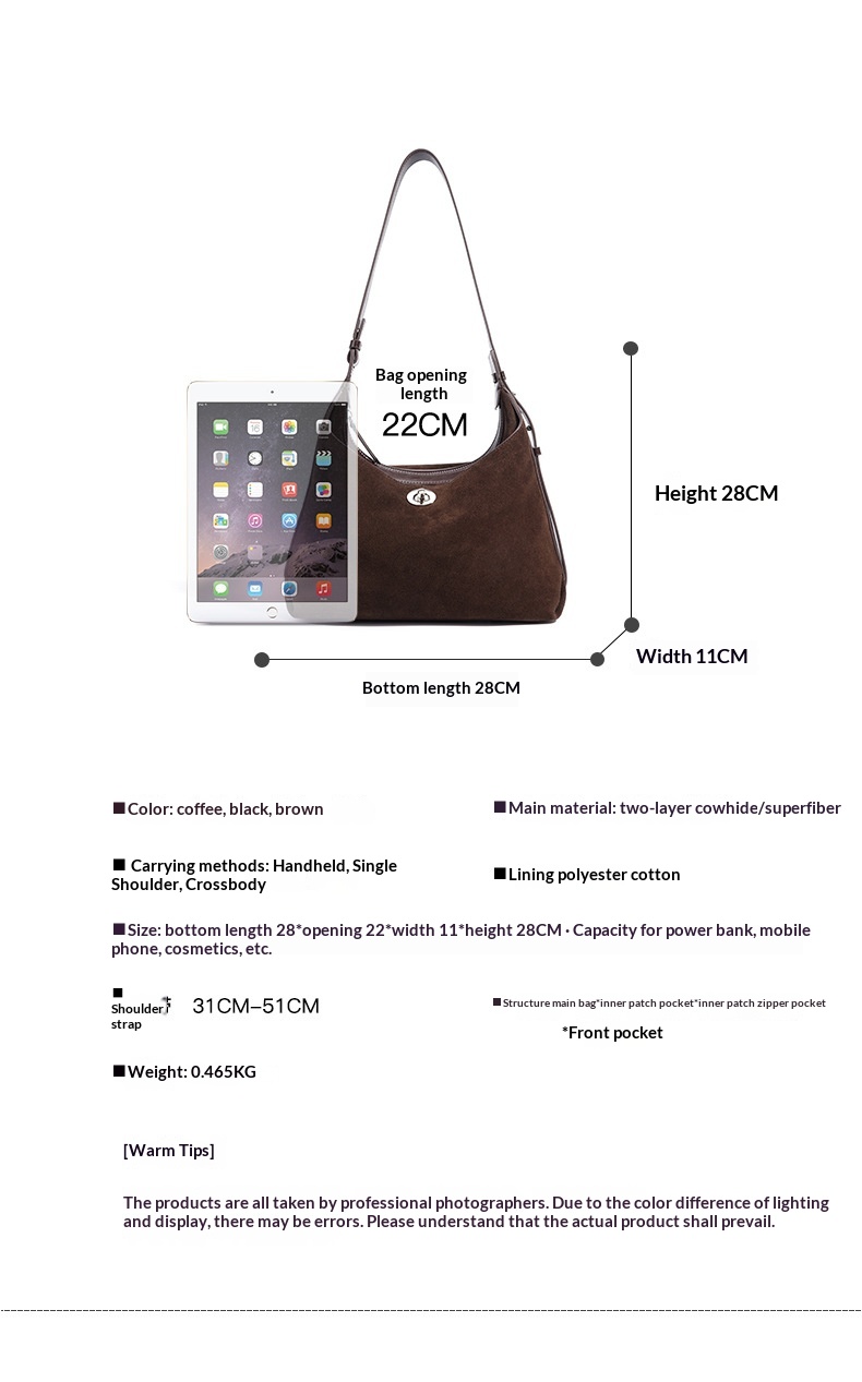 Cowhide Suede Bucket Bag Simple Versatile Chain Crossbody Bag