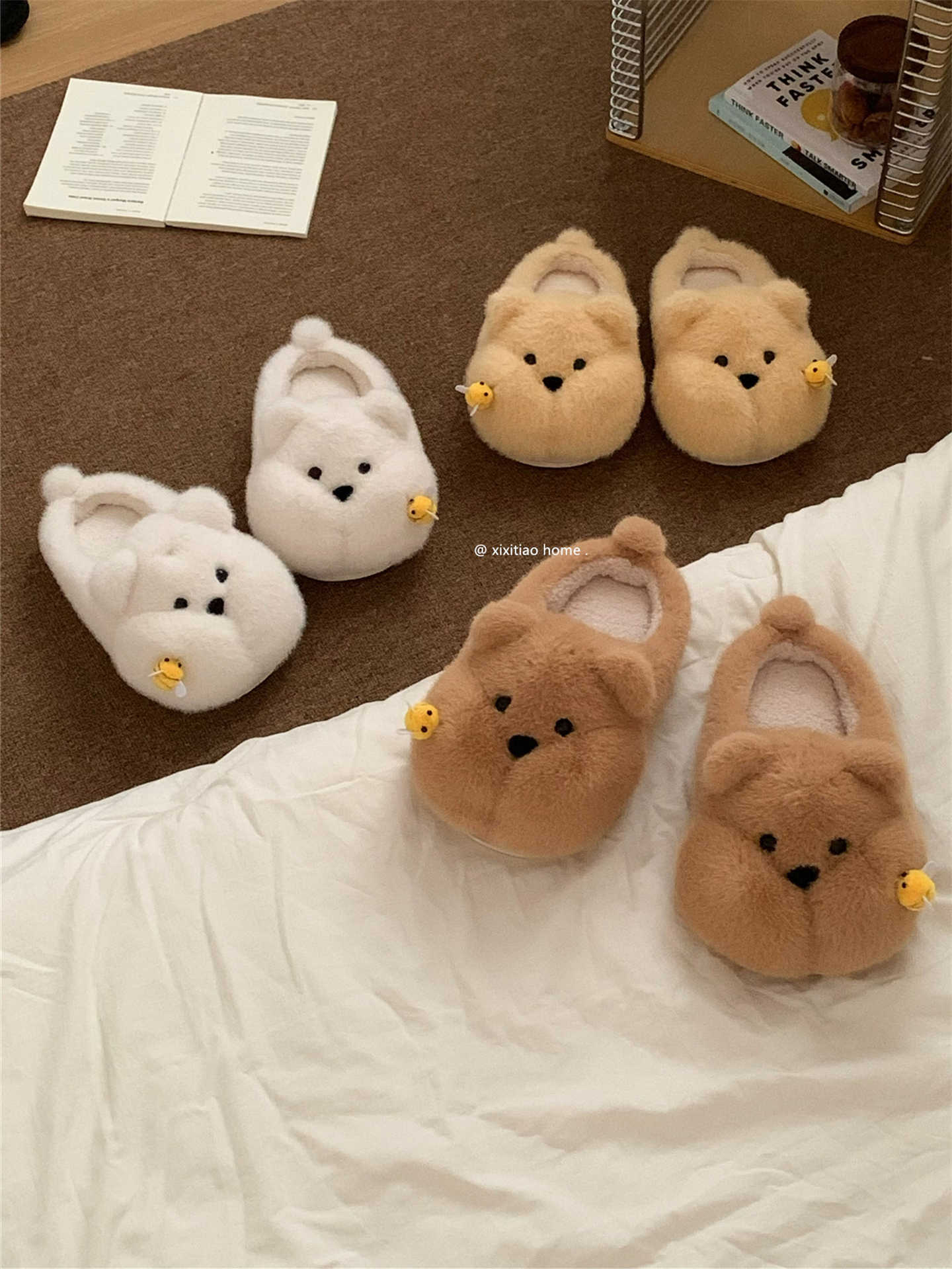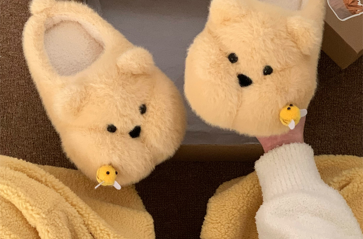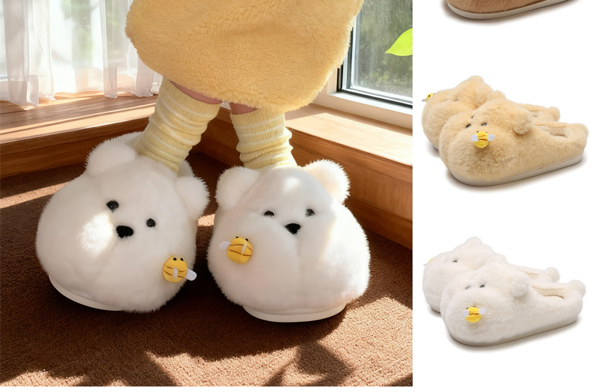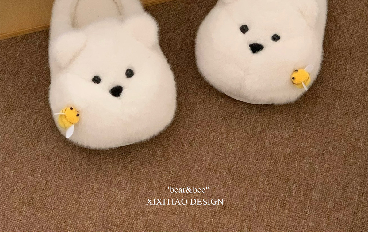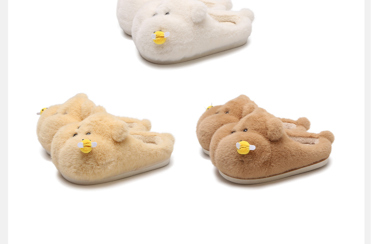 Product information:Pattern: Cartoon Inner Material: Synthetic Plush Colors: White [Bee Bear], Yellow [Bee Bear], Brown [Bee Bear] Heel Height: Approximately 2 cm Sizes: 36–37 [Standard Size], 38–39 [...