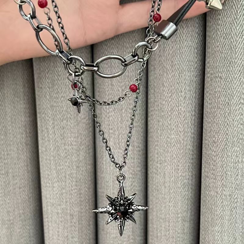 Product information:Color: Starburst Pendant Rivet Leather Necklace Material: Alloy Style: Fashion Style Packing list: Necklace* 1 Product Image: