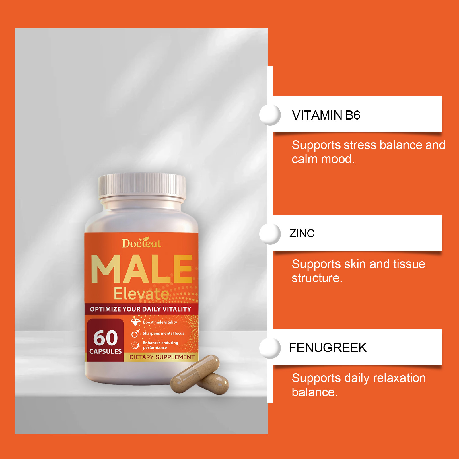 Ingredients: vitamin B6, vitamin B12, zinc, L- citrulline, fenugreek, and East Geali extract.