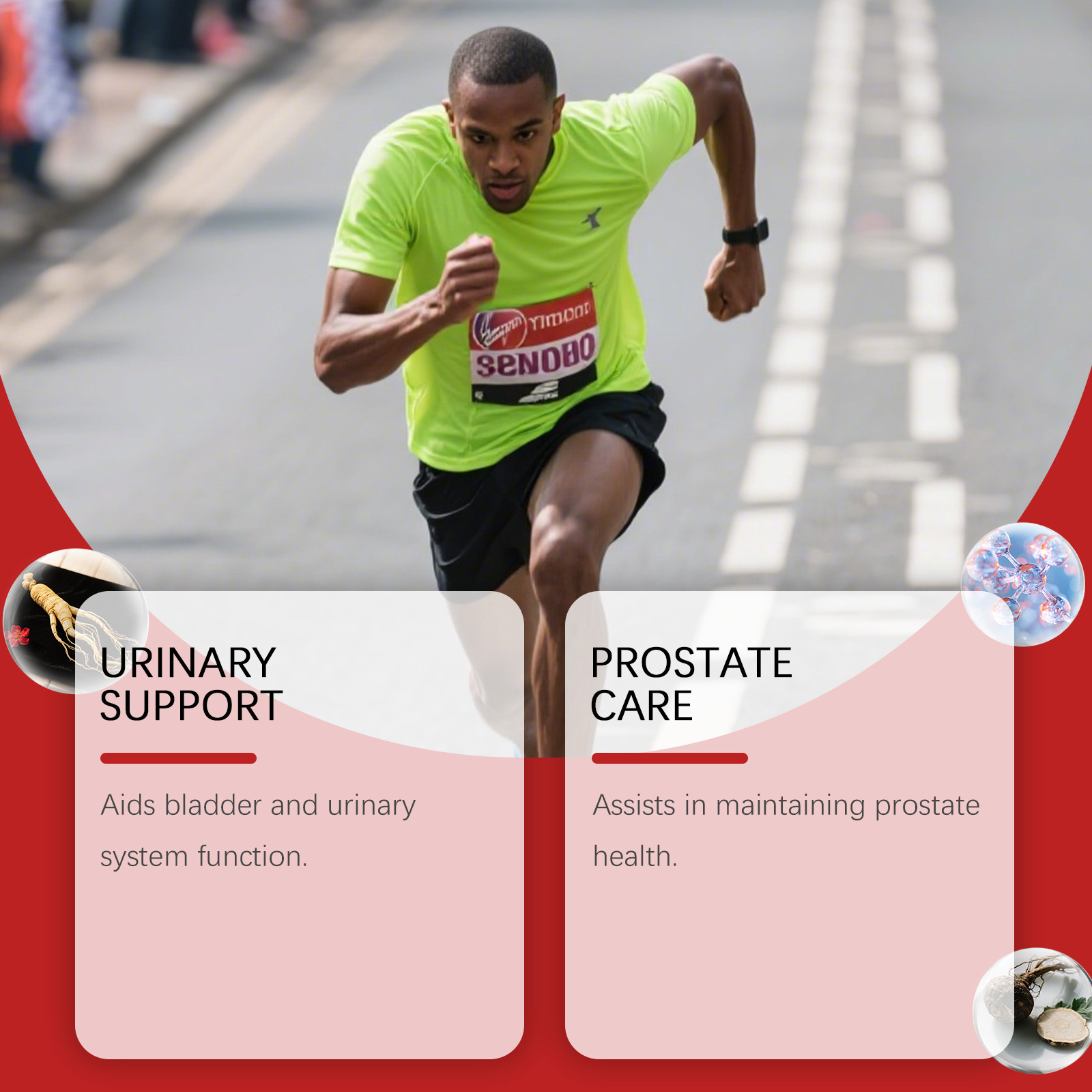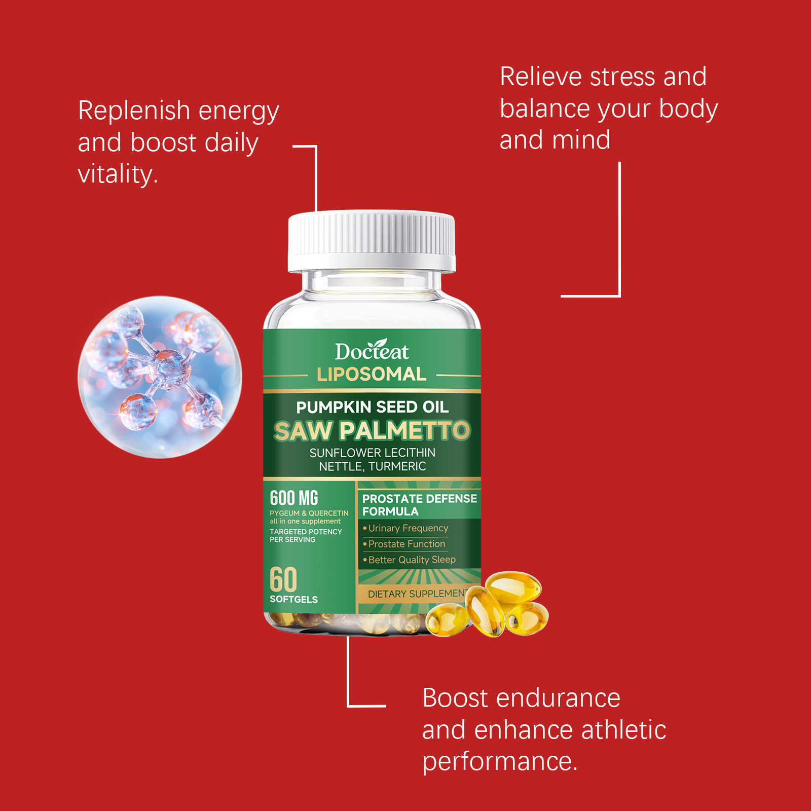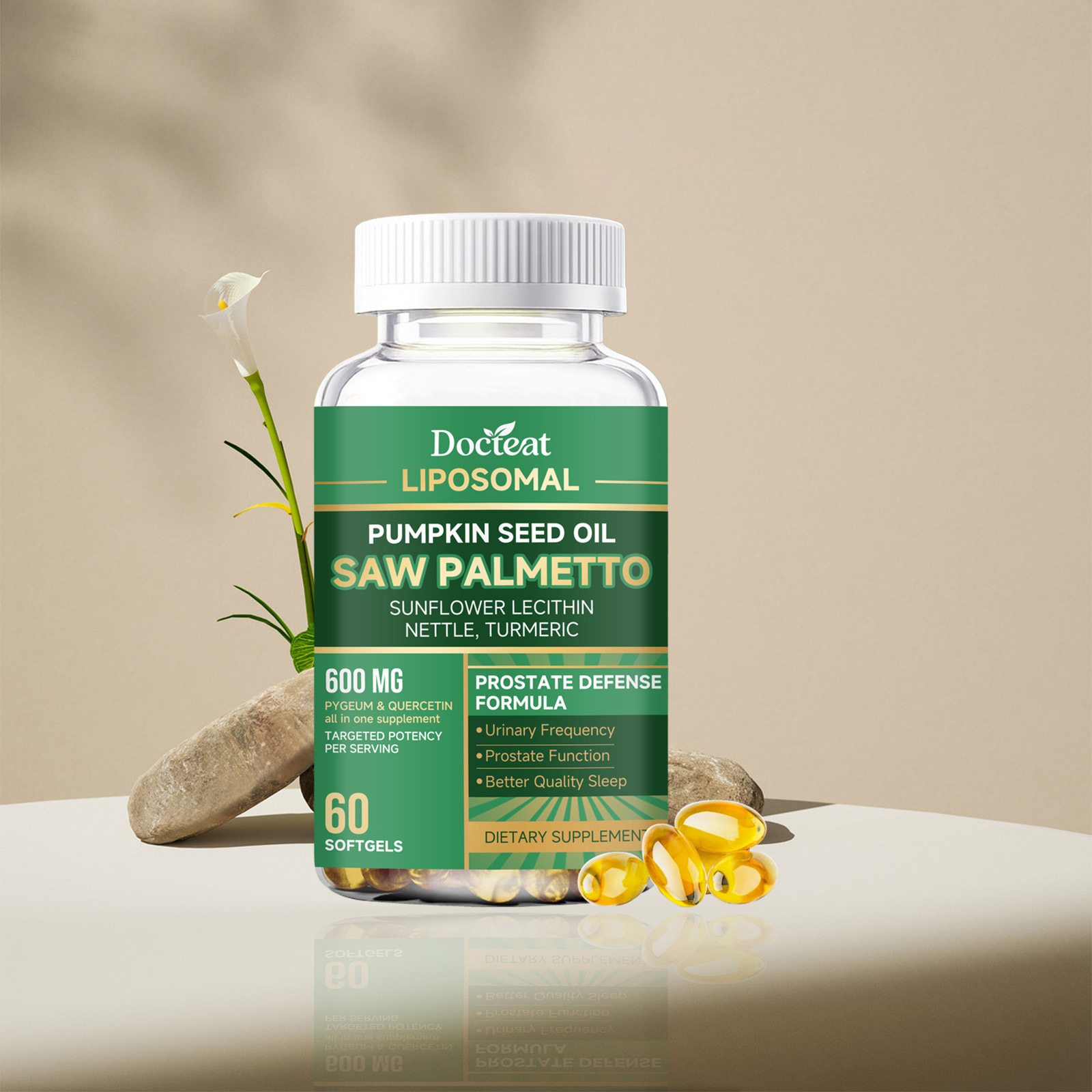 Ingredients: vitamin C, zinc, pumpkin seed oil, saw palm fruit extract, turmeric root extract, sunflower lecithin extract, nettle root extract, African thorn plum bark extract, quercetin.