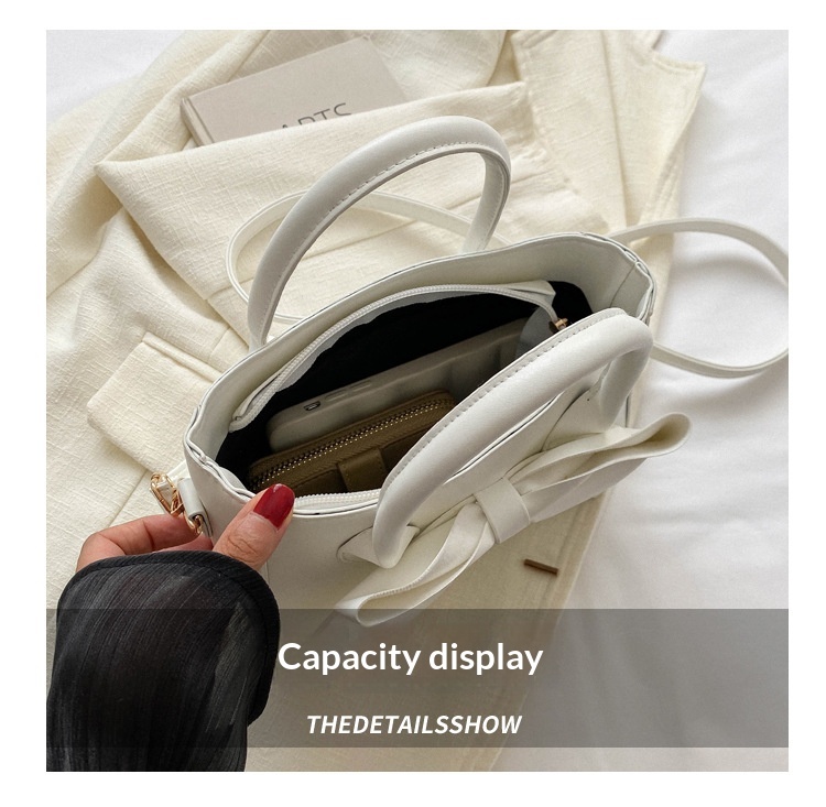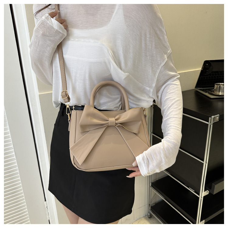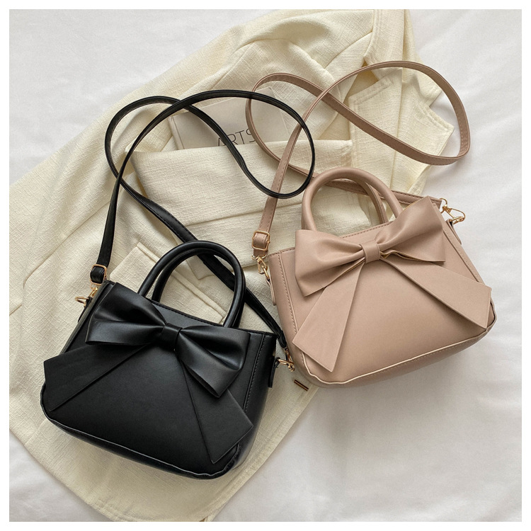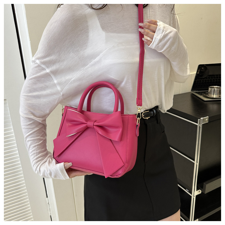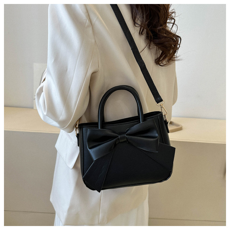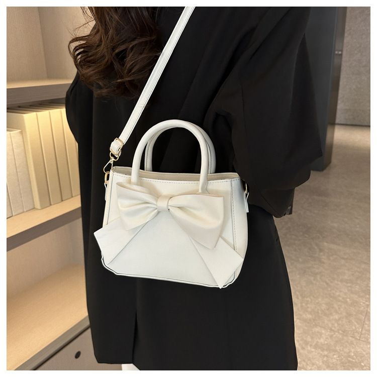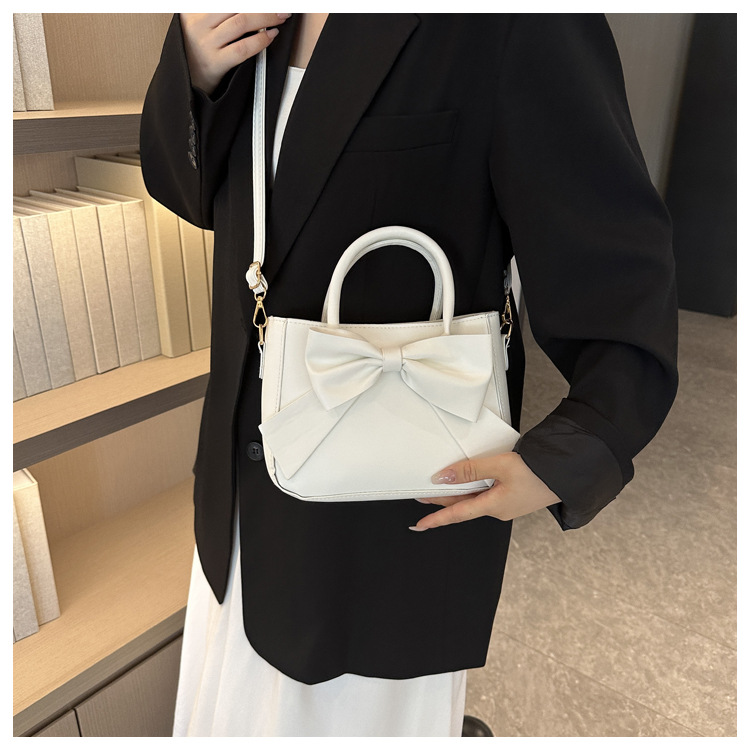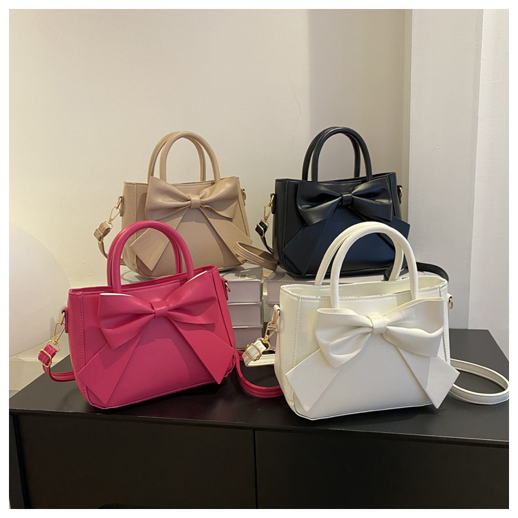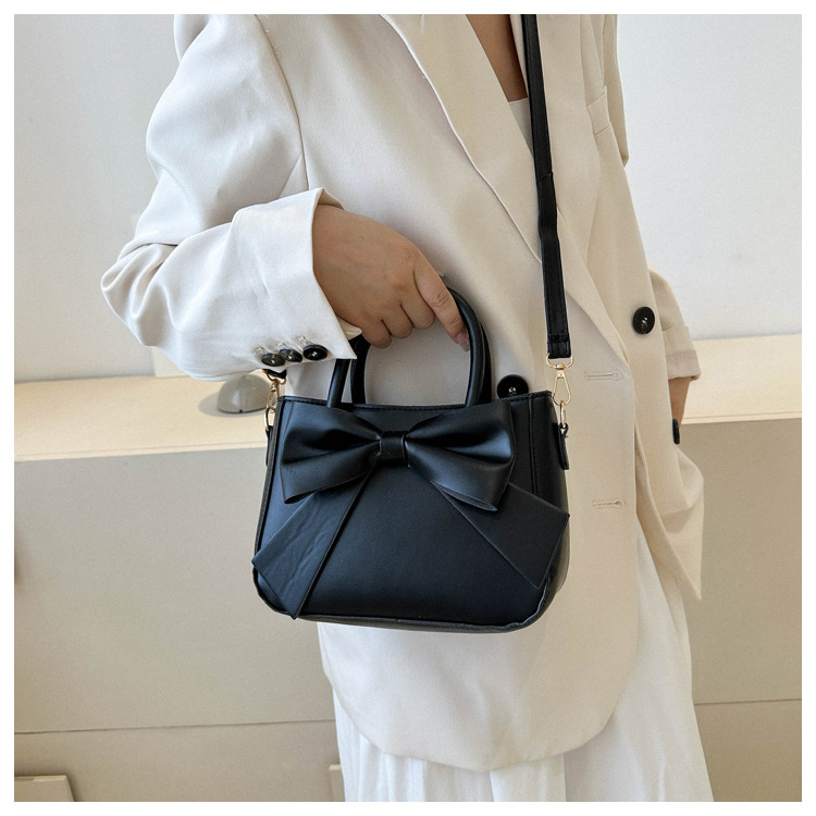 Fashionable Retro Bow-Trimmed Small Square Handbag Crossbody Or Shoulder Style