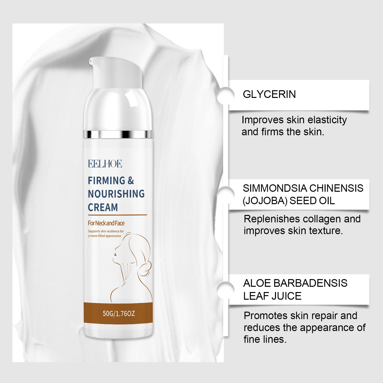 Product information:Ingredients: water, mineral oil, glycerin, glycerol stearate, 1,2- hexanediol, carbomer, arginine, allantoin, jojoba seed oil, hyaluronic acid, aloe vera leaf juice. Packing list:...