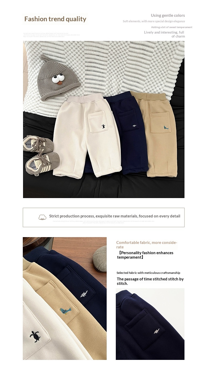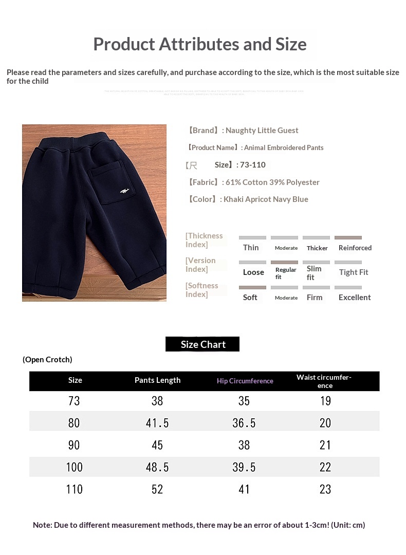 Product information:Pattern: Animals, Cartoon Color: Apricot, Navy Blue, Khaki Waistband: Elastic Waistband Suitable Heights: 73cm, 80cm, 90cm, 100cm, 110cm Waist Position: Mid-rise Fabric Name: Cotto...