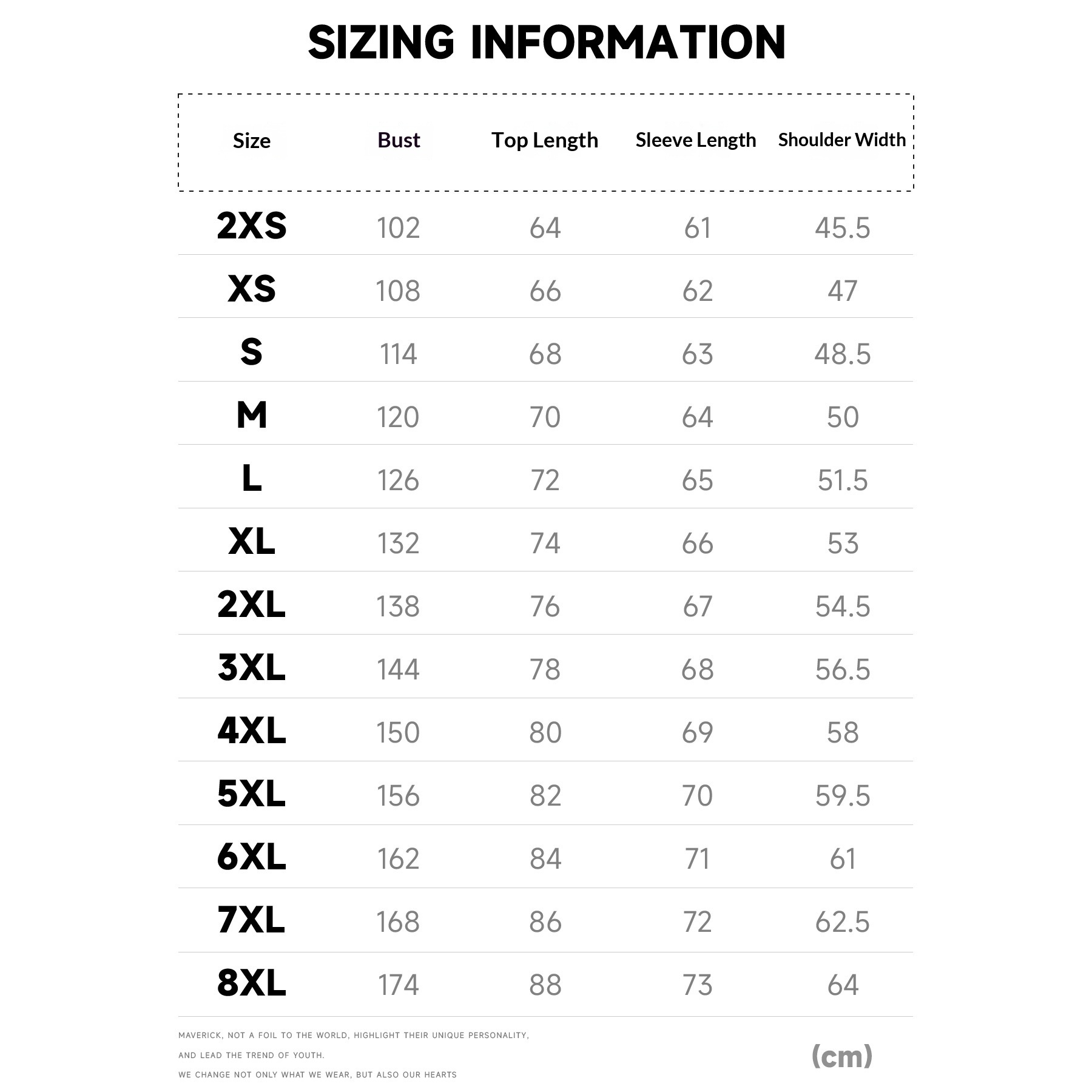 Sizes: S, M, L, XL, 2XL, 3XL, 4XL, 5XL