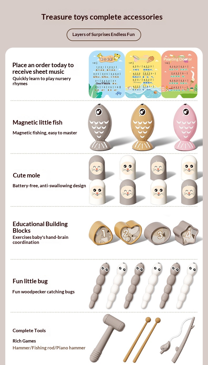 Skill Development: Emotional development, visual stimulation, intellectual inspiration, crawling training, hands-on and cognitive skills, grasping ability, sensory exploration, hand-eye coordination, auditory perception, interest cultivation