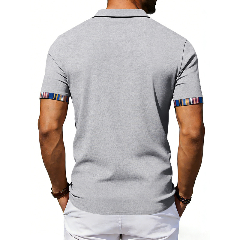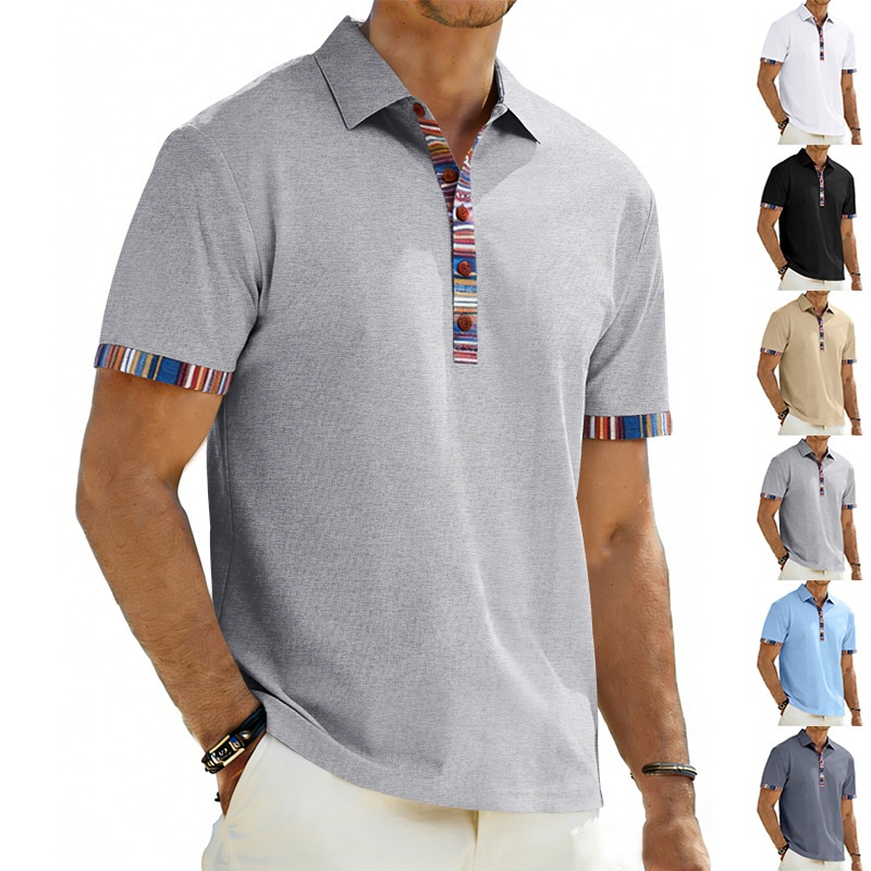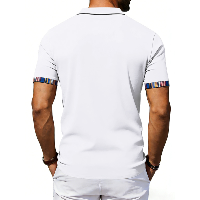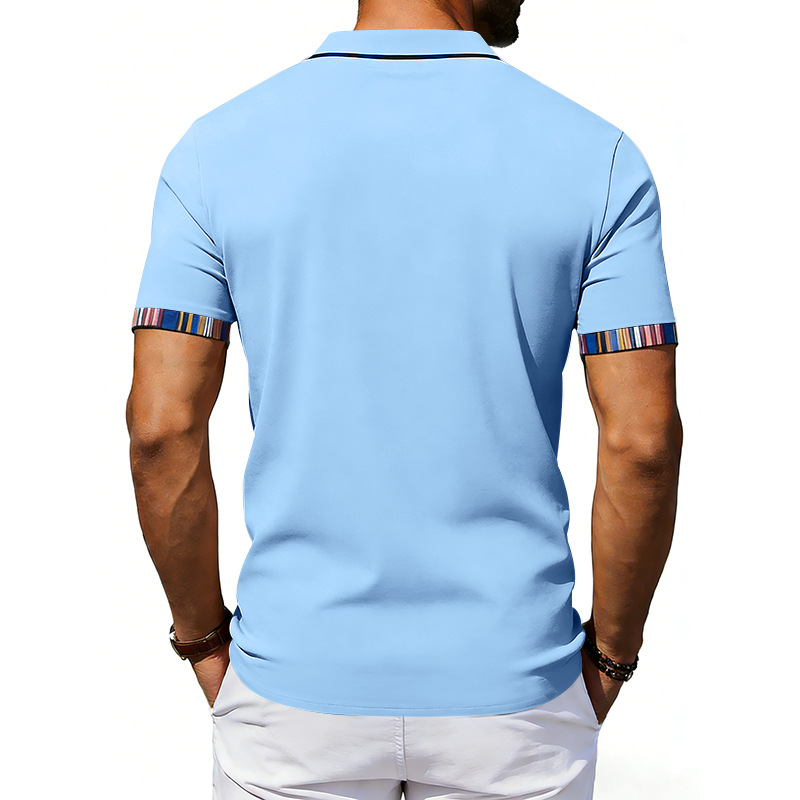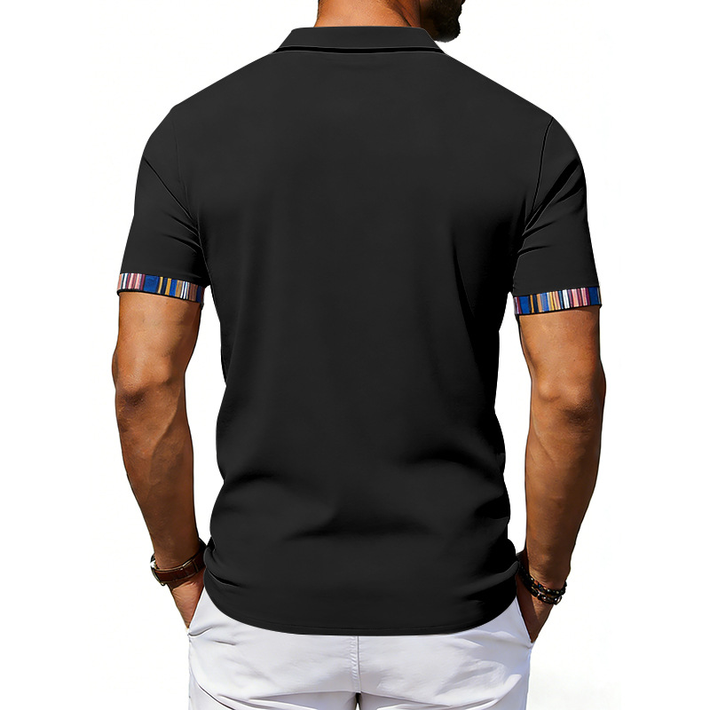 Men's Casual Lapel Contrast-color Polo Shirt Short-sleeve Polo Tee