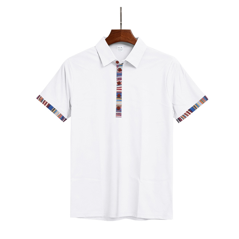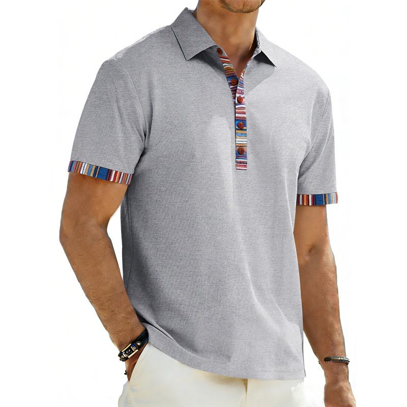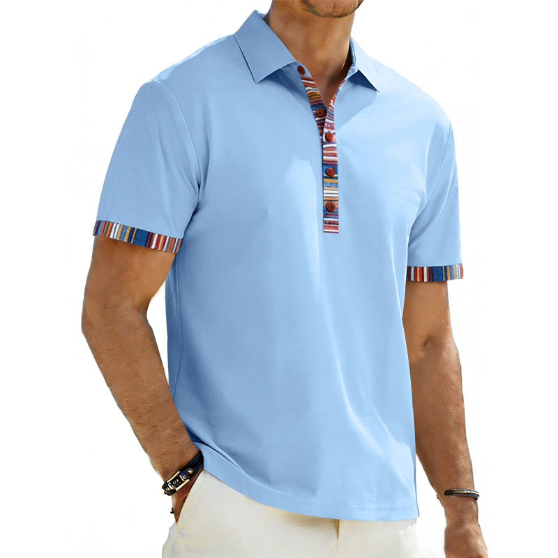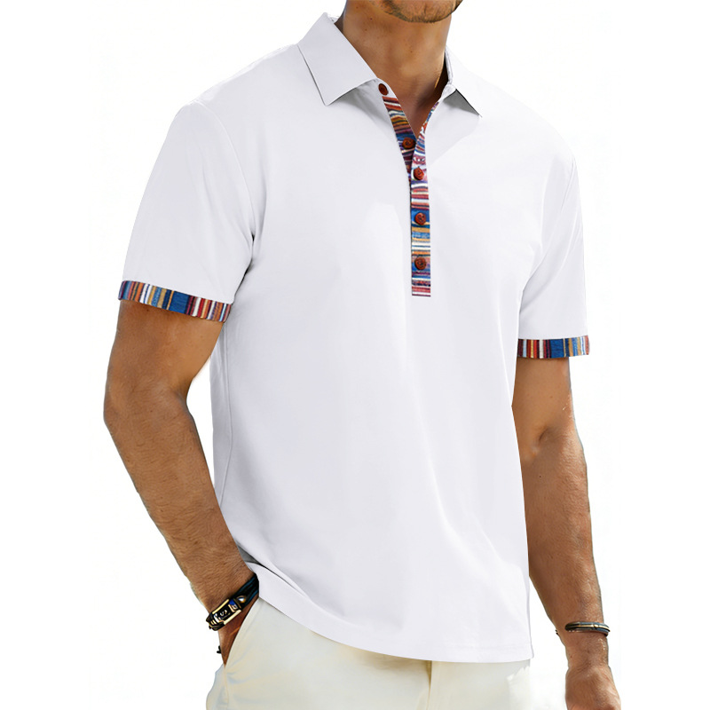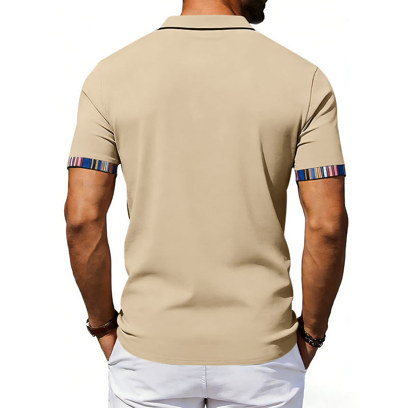 Men's Casual Lapel Contrast-color Polo Shirt Short-sleeve Polo Tee