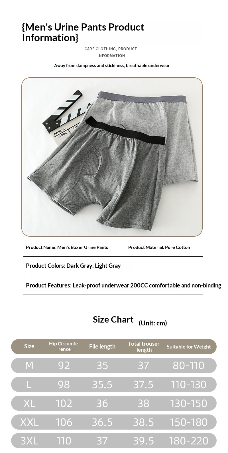 Product information:Pattern: Solid color Weave: Plain weave Fabric name: Cotton Color: Men’s flat-front adult diapers—light gray, dark gray Main fabric composition: Cotton Waist style: Mid-rise Target...
