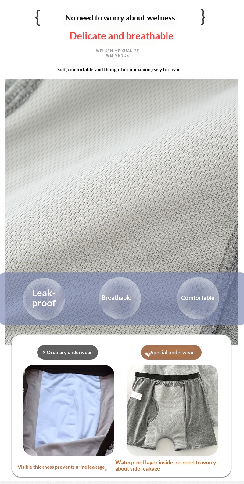 Mens Highly Absorbent Waterproof Leak-Proof Incontinence Underwear
