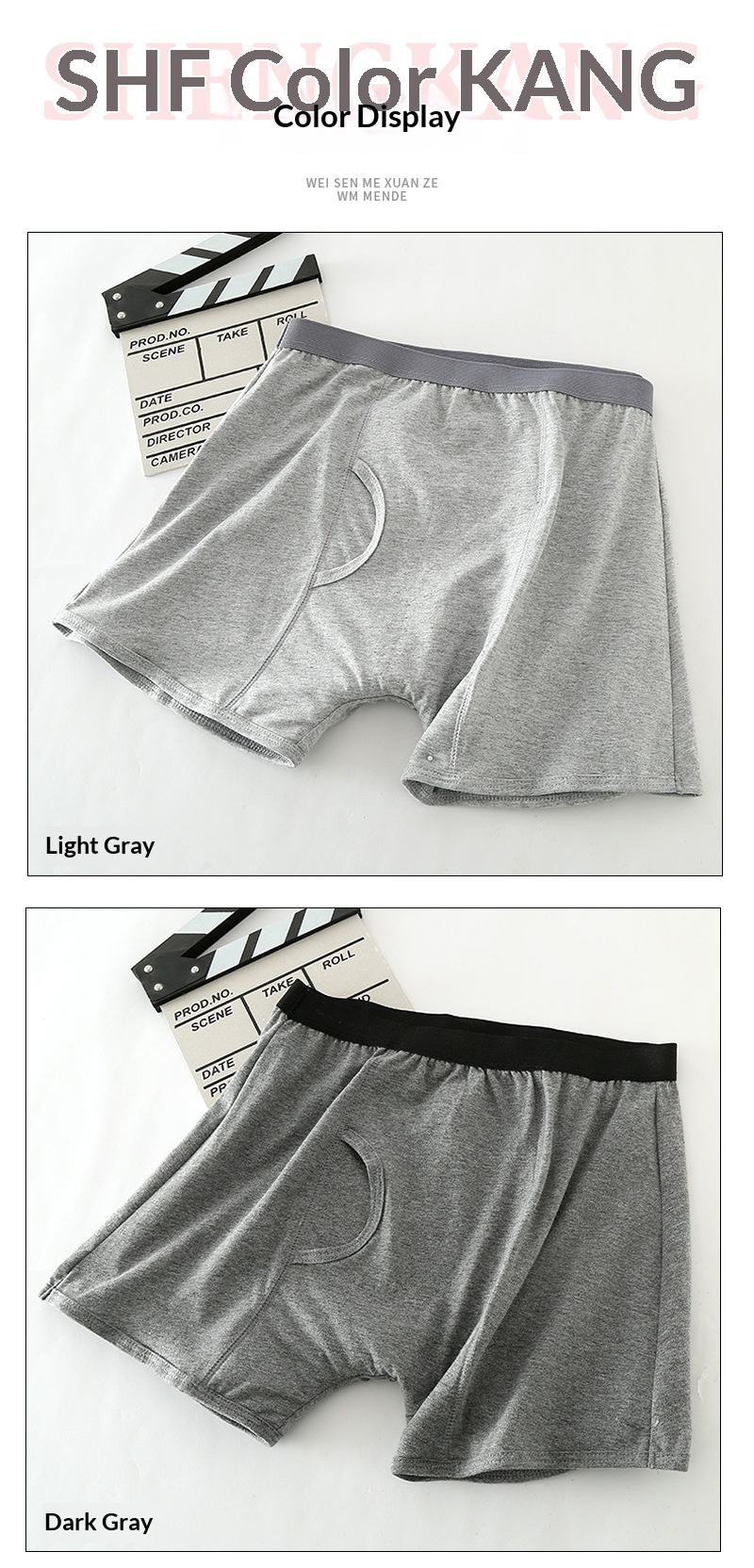 Color: Men’s flat-front adult diapers—light gray, dark gray