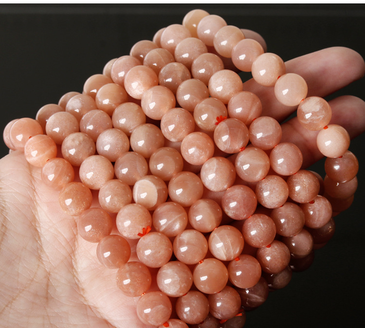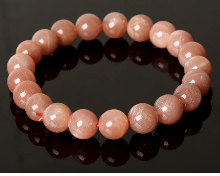 Natural Orange Moonstone Round Bead Bracelet