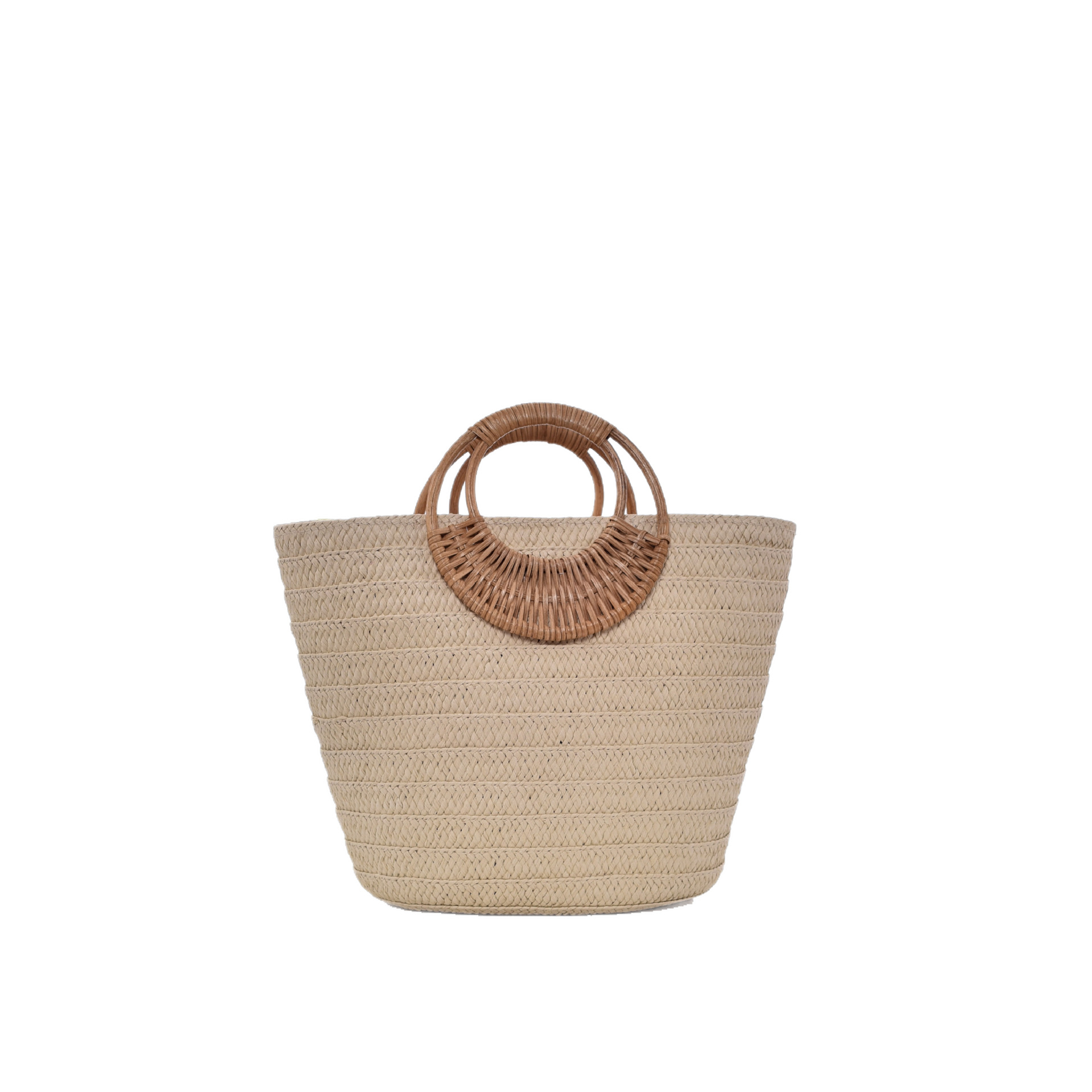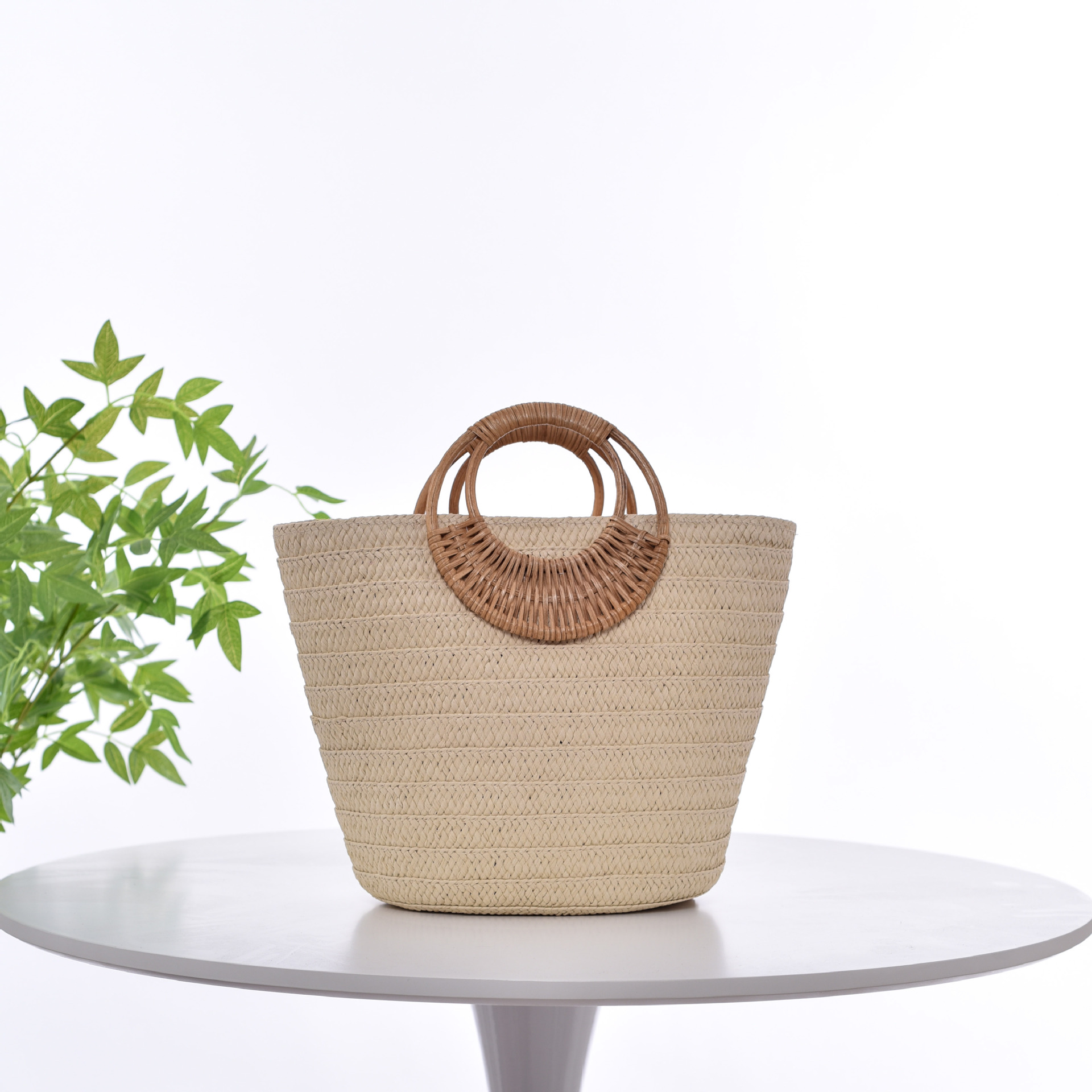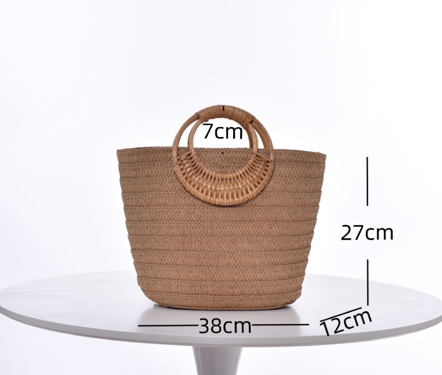 Simple Straw Weave Womens Large-Capacity Round-Handle Tote Bag