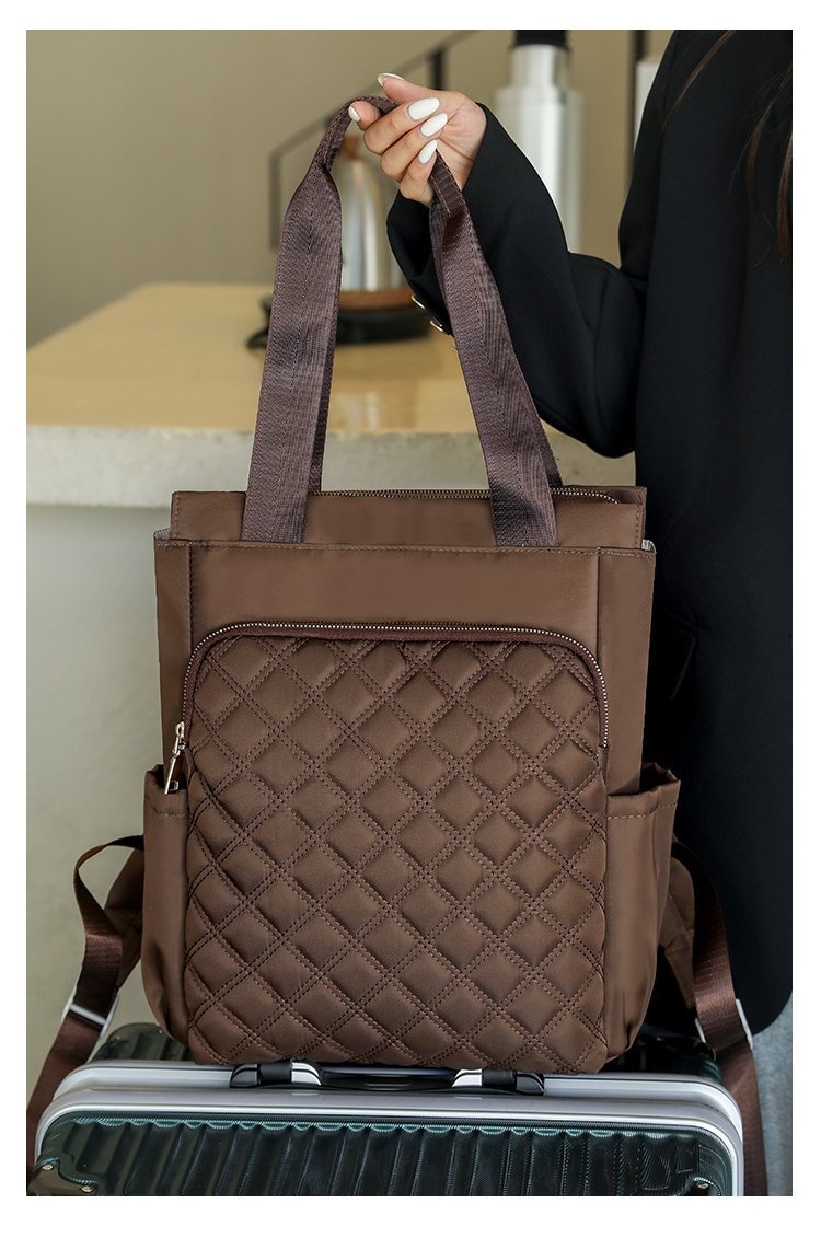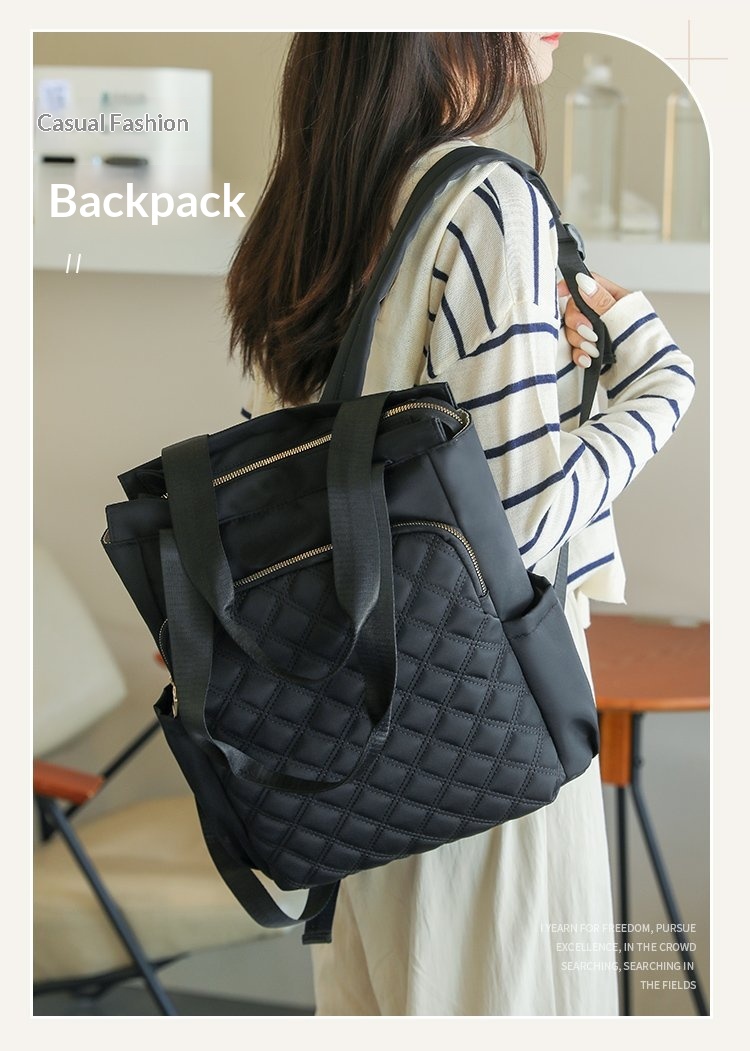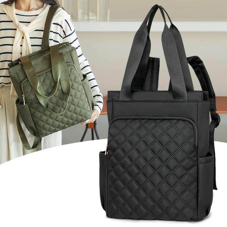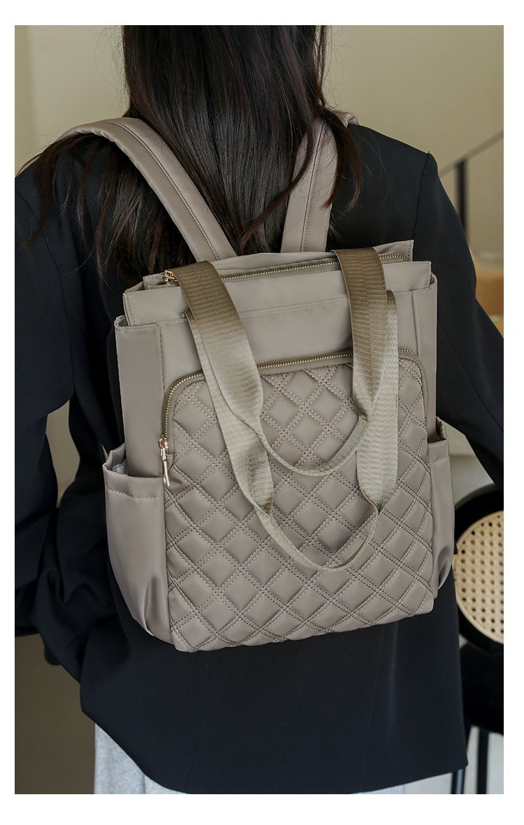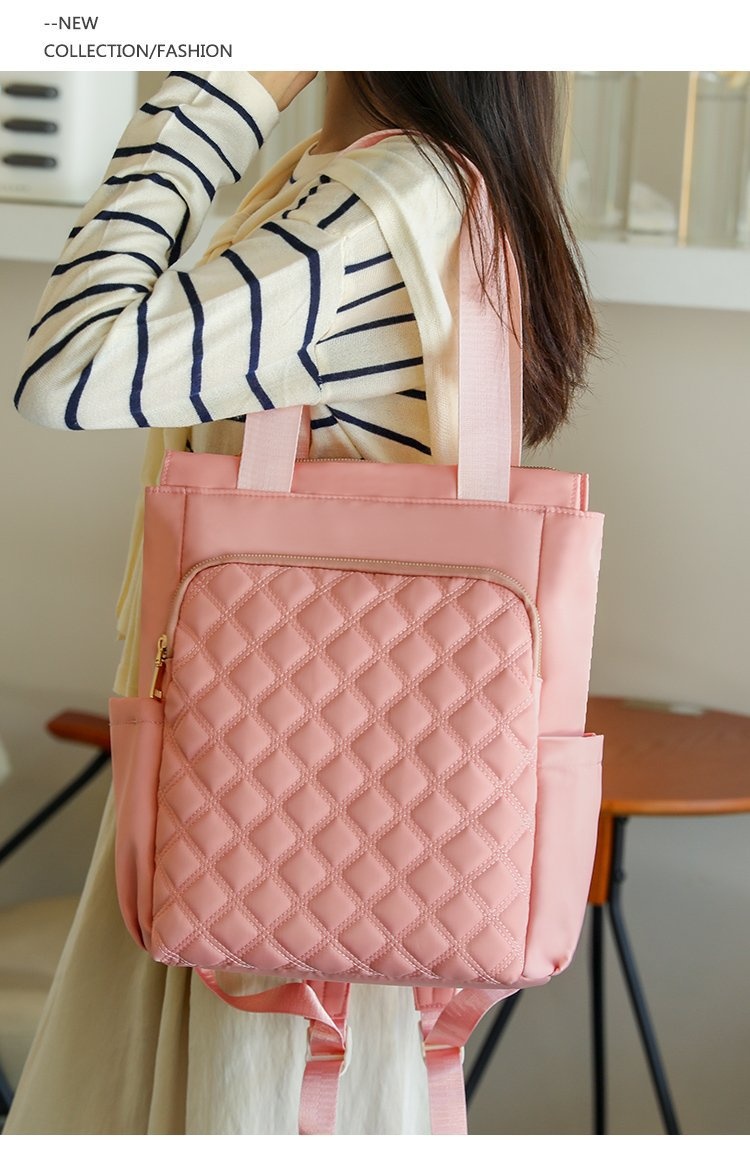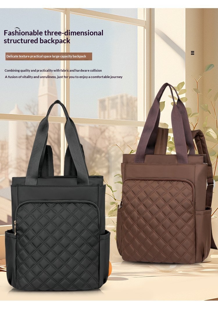 Stylish Casual Dual-handle Backpack With Embroidered Diamond-pattern Designversatile And Perfect For Everyday Use For Women