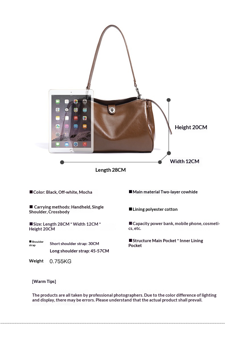 Product information:Inner material: Polyester-cotton Applicable scene: Everyday wear Colors: Black, mocha, off-white Outer pocket type: Inside slip pocket Leather characteristic: Second-layer cowhide...