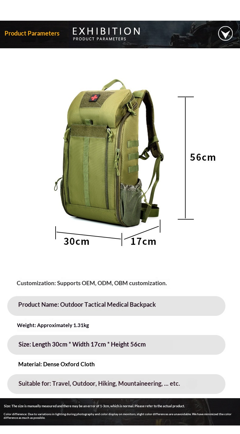 Tactical Hiking Outdoor Medical Backpack High Capacity Camping Mountaineering Rucksack