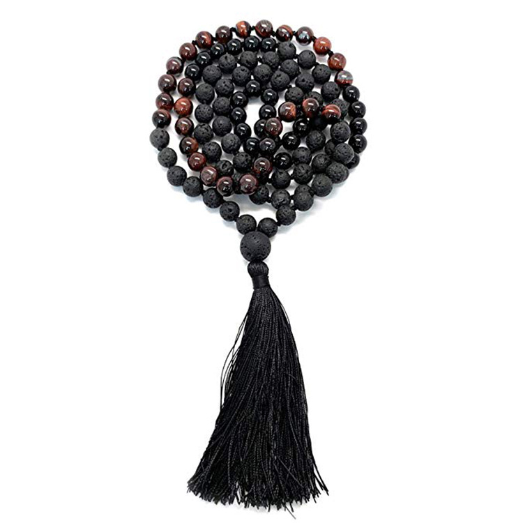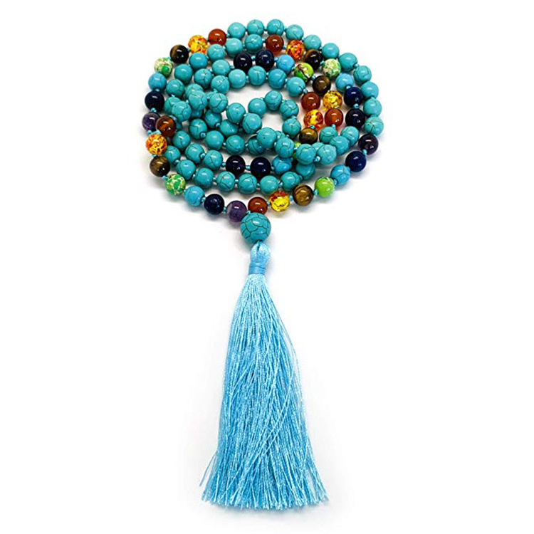 Tassel Long Necklace 108 Beads Handmade Natural Stone Layered Style
