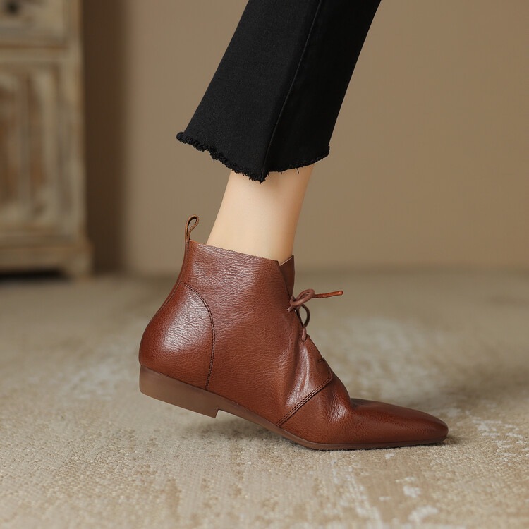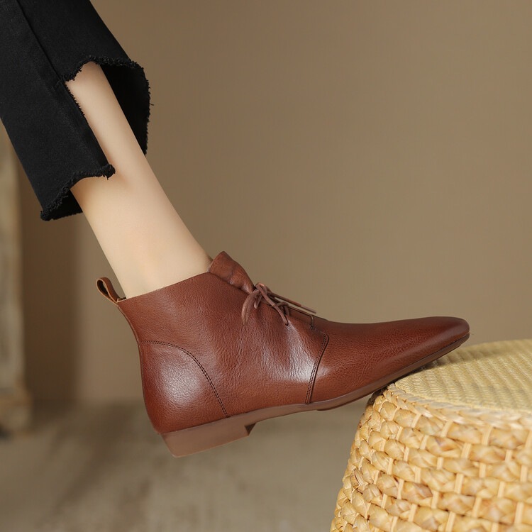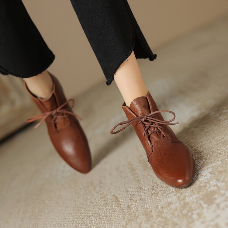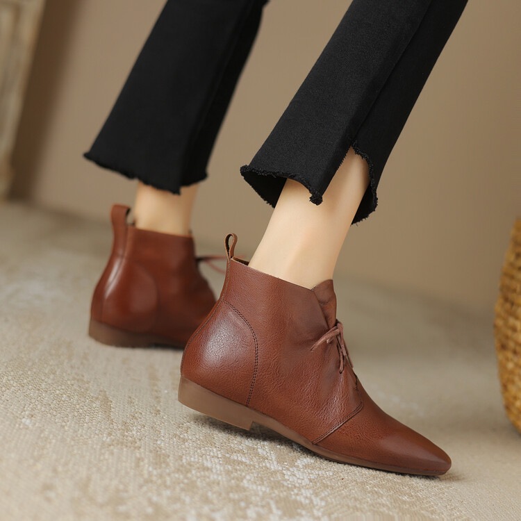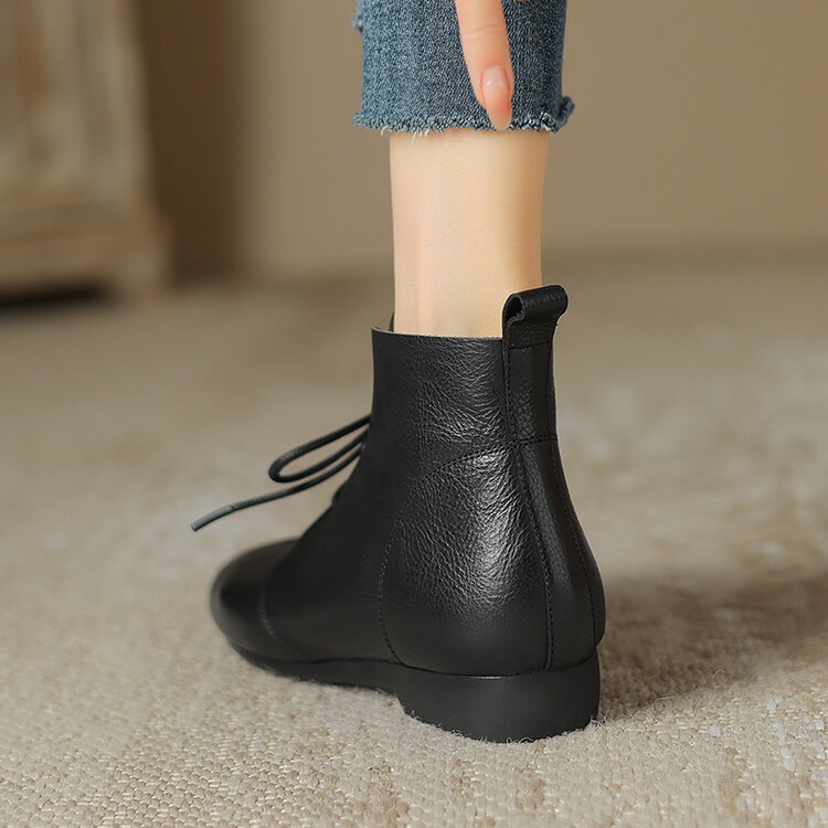 Versatile Casual Ankle Boots With A Round Toe And Flat Sole In A Vintage Style