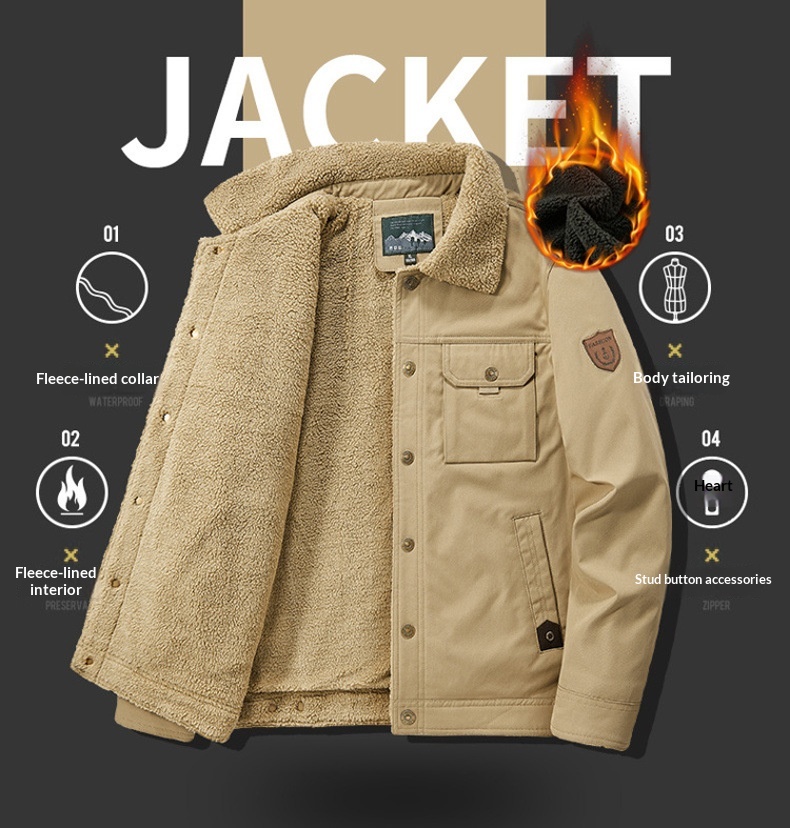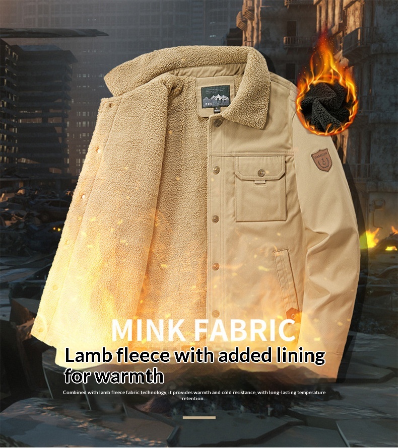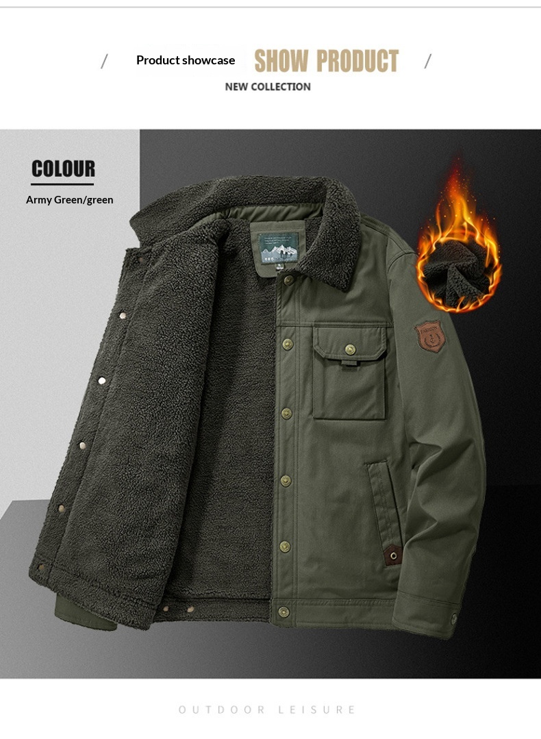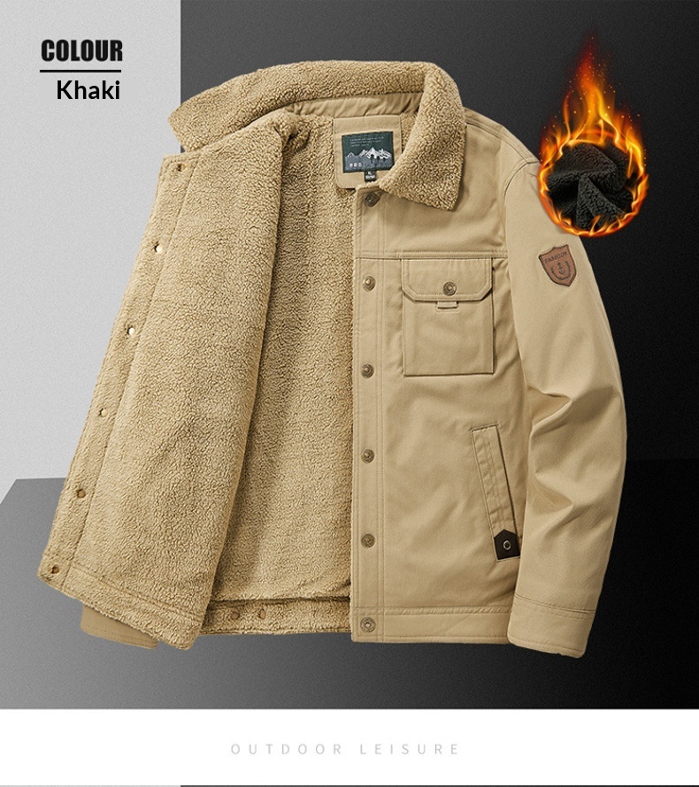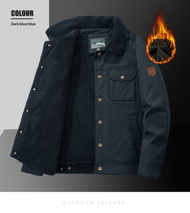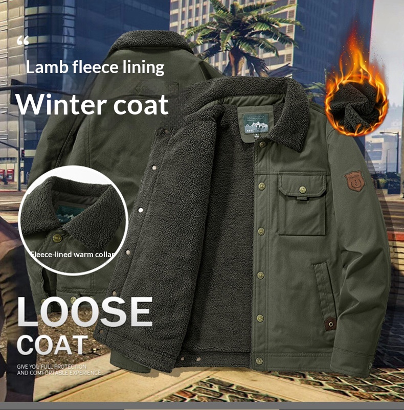 Washed Jacket For Men Fleece-lined And Thickened Lambswool Casual Style