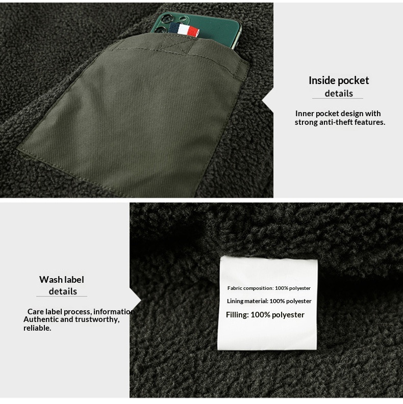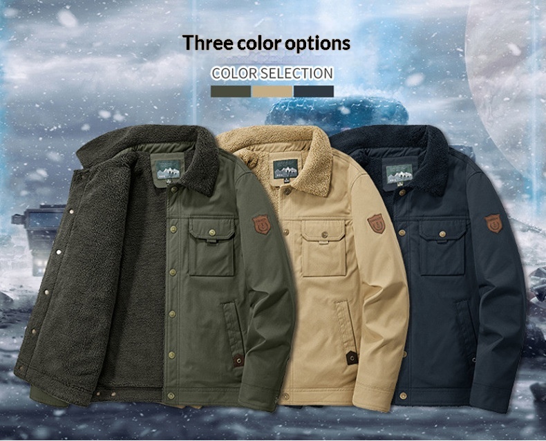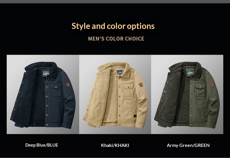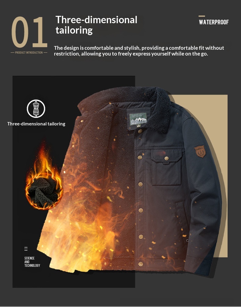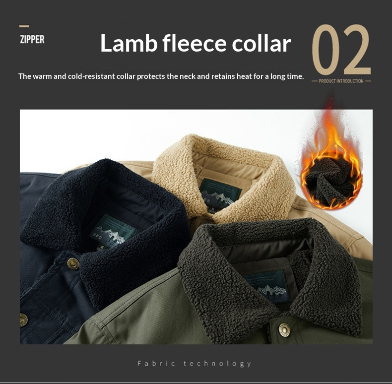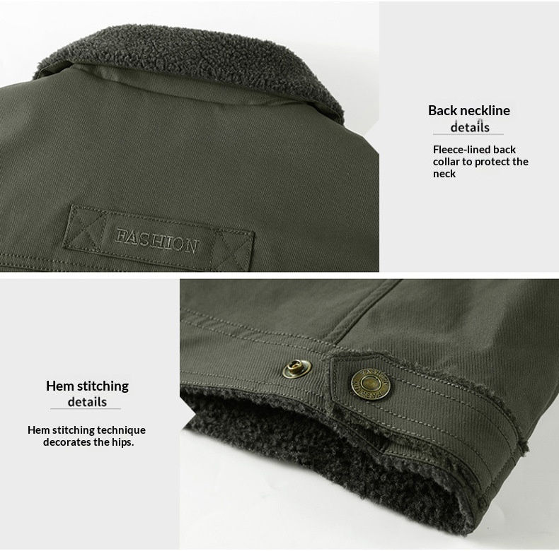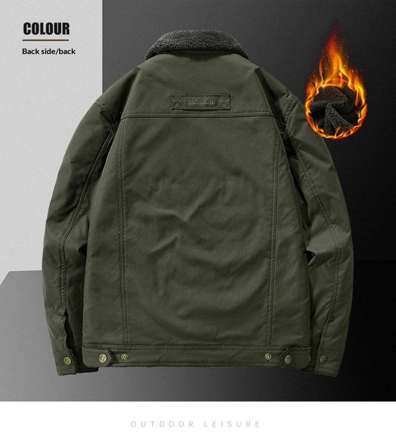 Washed Jacket For Men Fleece-lined And Thickened Lambswool Casual Style