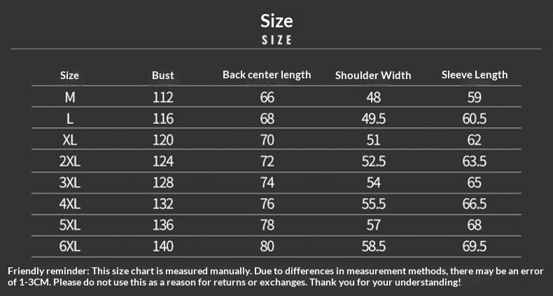 Sizes: M, L, XL, 2XL, 3XL, 4XL, 5XL