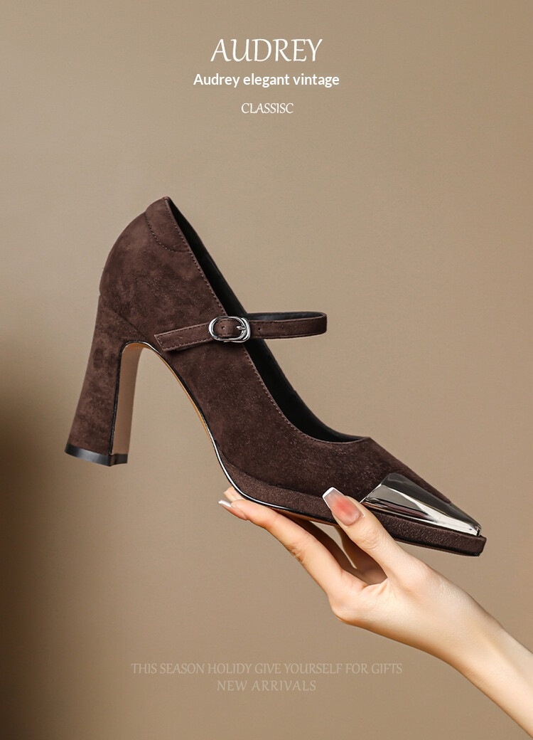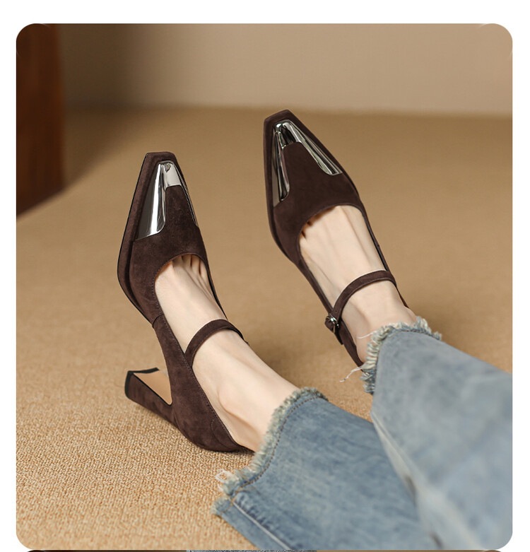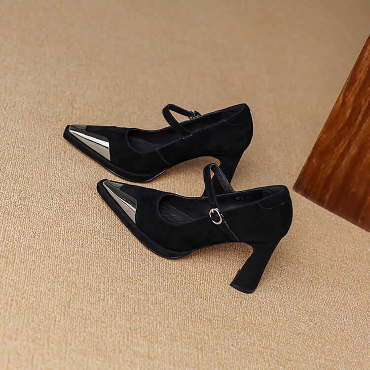 Womens Comfortable Stiletto Heels With A Sturdy Metal Toe And Buckle Detailing