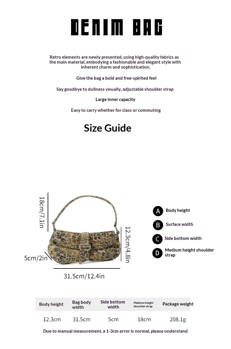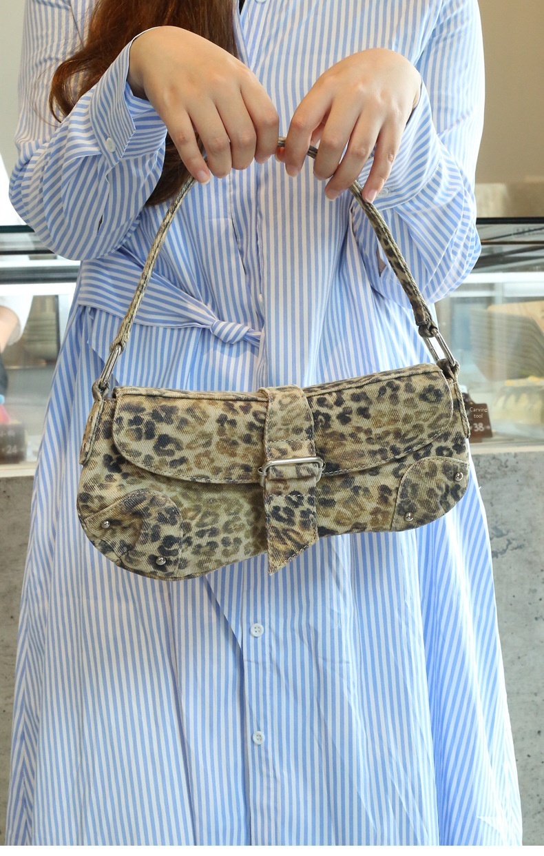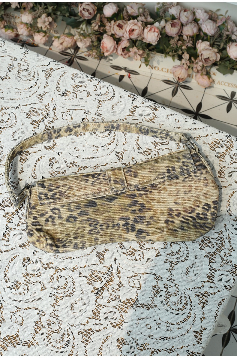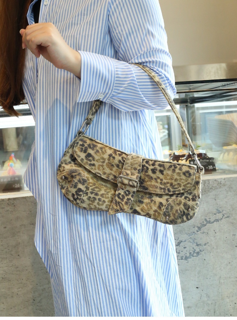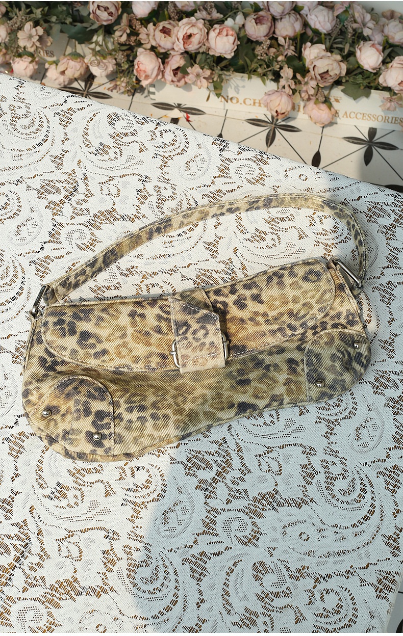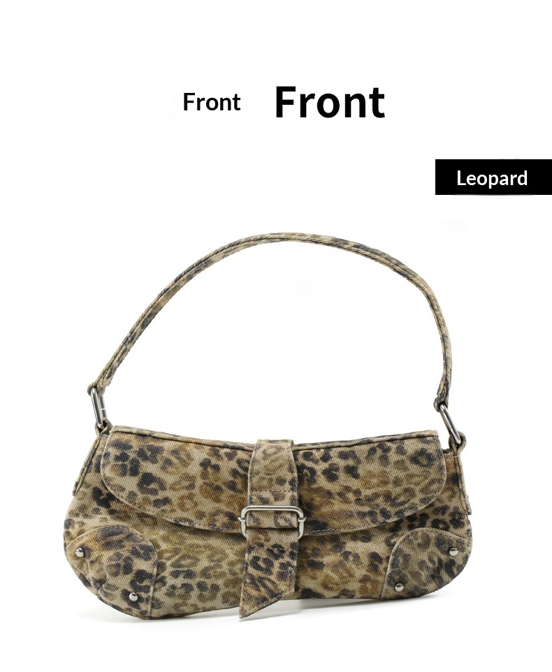 Womens Distressed Leopard-print Underarm Bag Asymmetric Single-shoulder