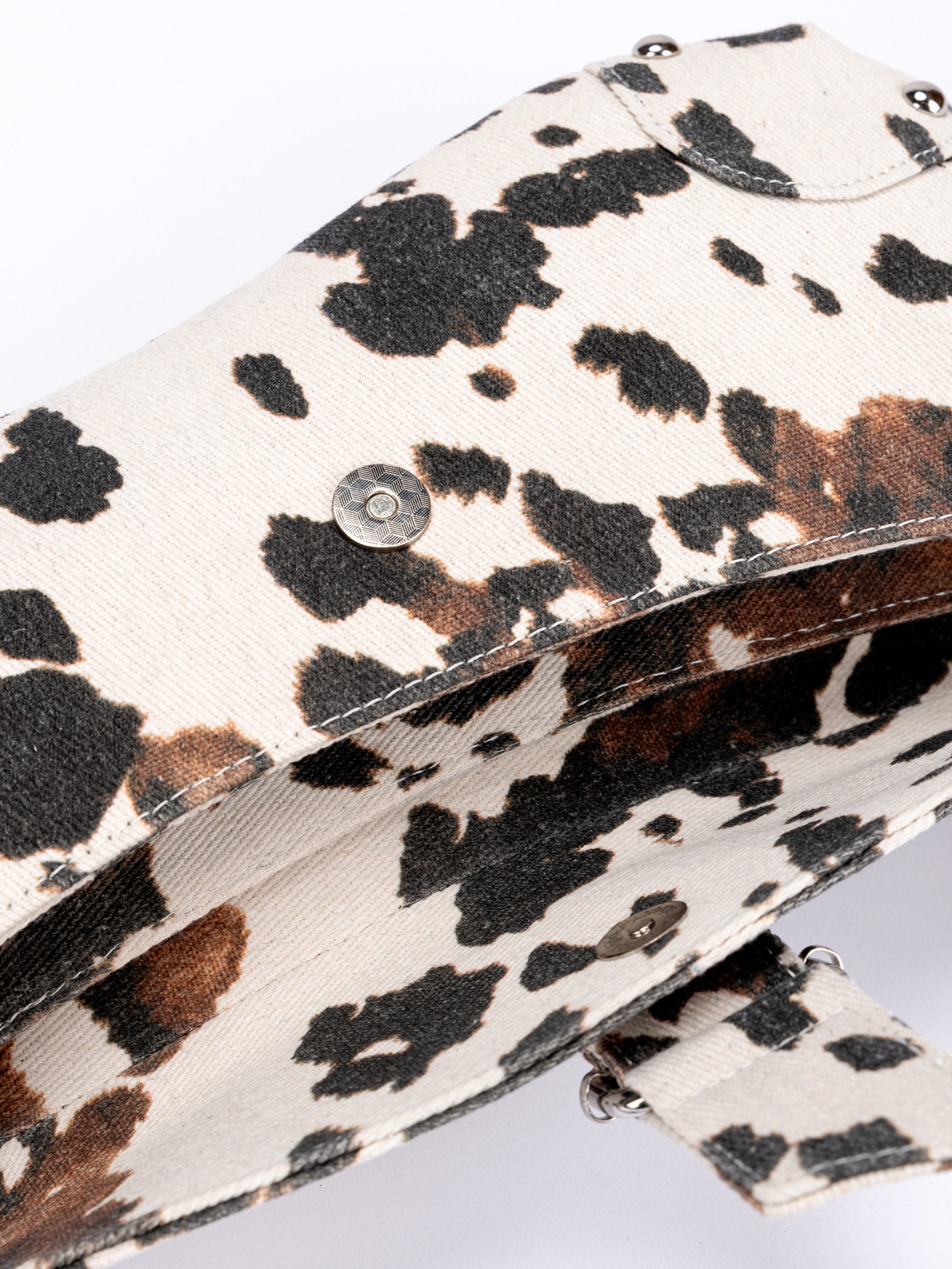 Product information:Lining material: polyester Applicable scene: everyday styling Colors: leopard print, cow print Outer pocket type: flap pocket Hardness: medium Material: canvas Trendy element: leop...