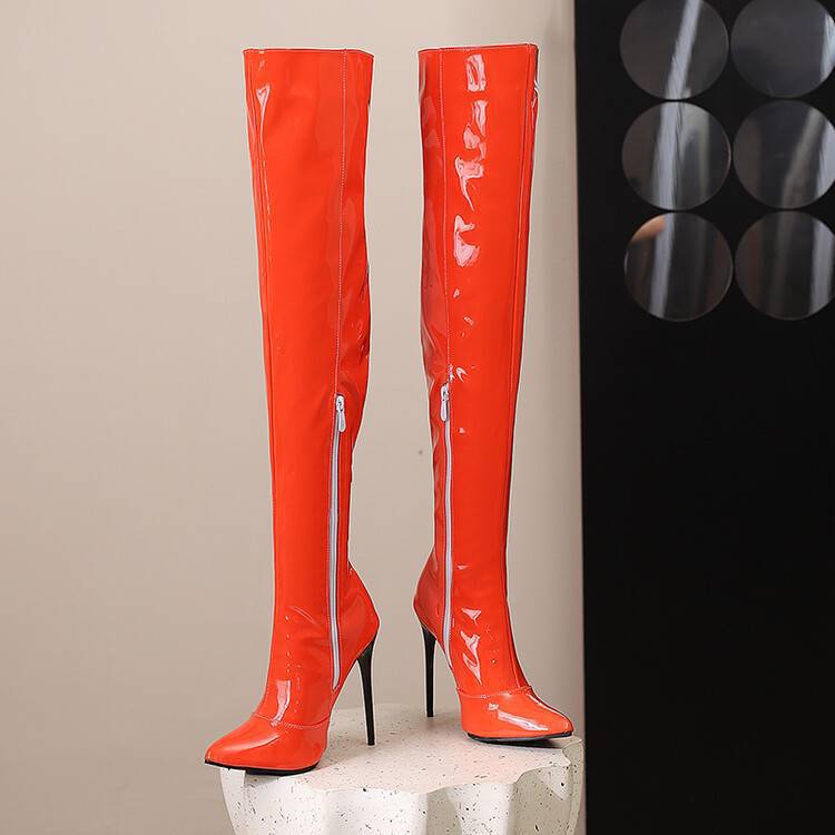 Womens Pointed-Toe Metal Stiletto Boots Elegant Versatile And Long-Style