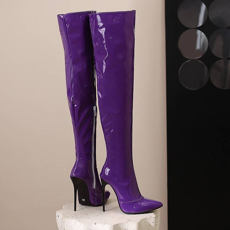 Product information:Pattern: Solid color Inner lining material: Synthetic leather Colors: Purple, black, red, orange, yellow, white, green Heel height: Flat heel Boot shaft height: Over-the-knee Heel...