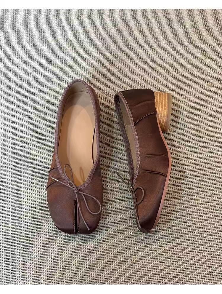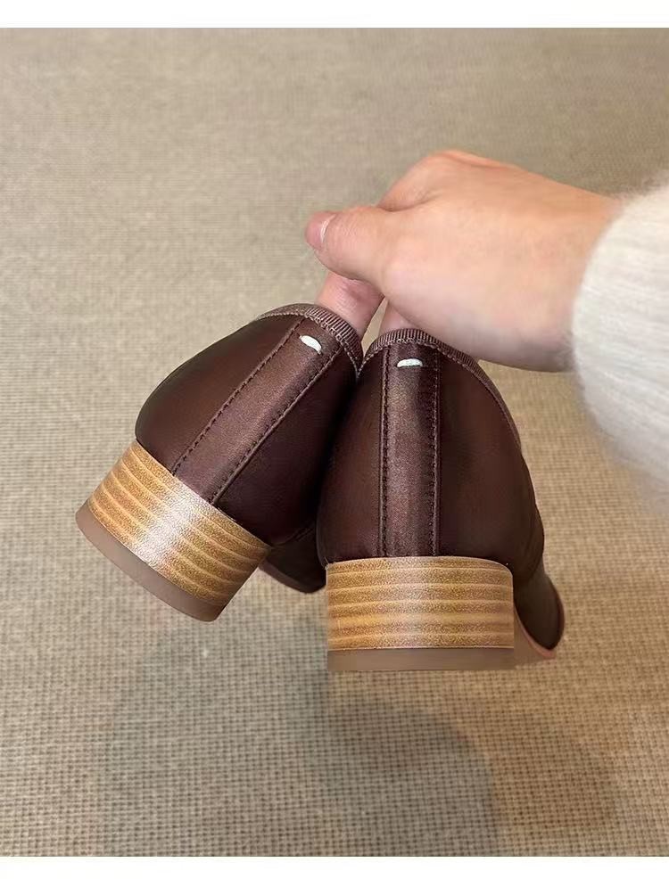 Womens Retro Low-Top Versatile Mid-Heel Shoes