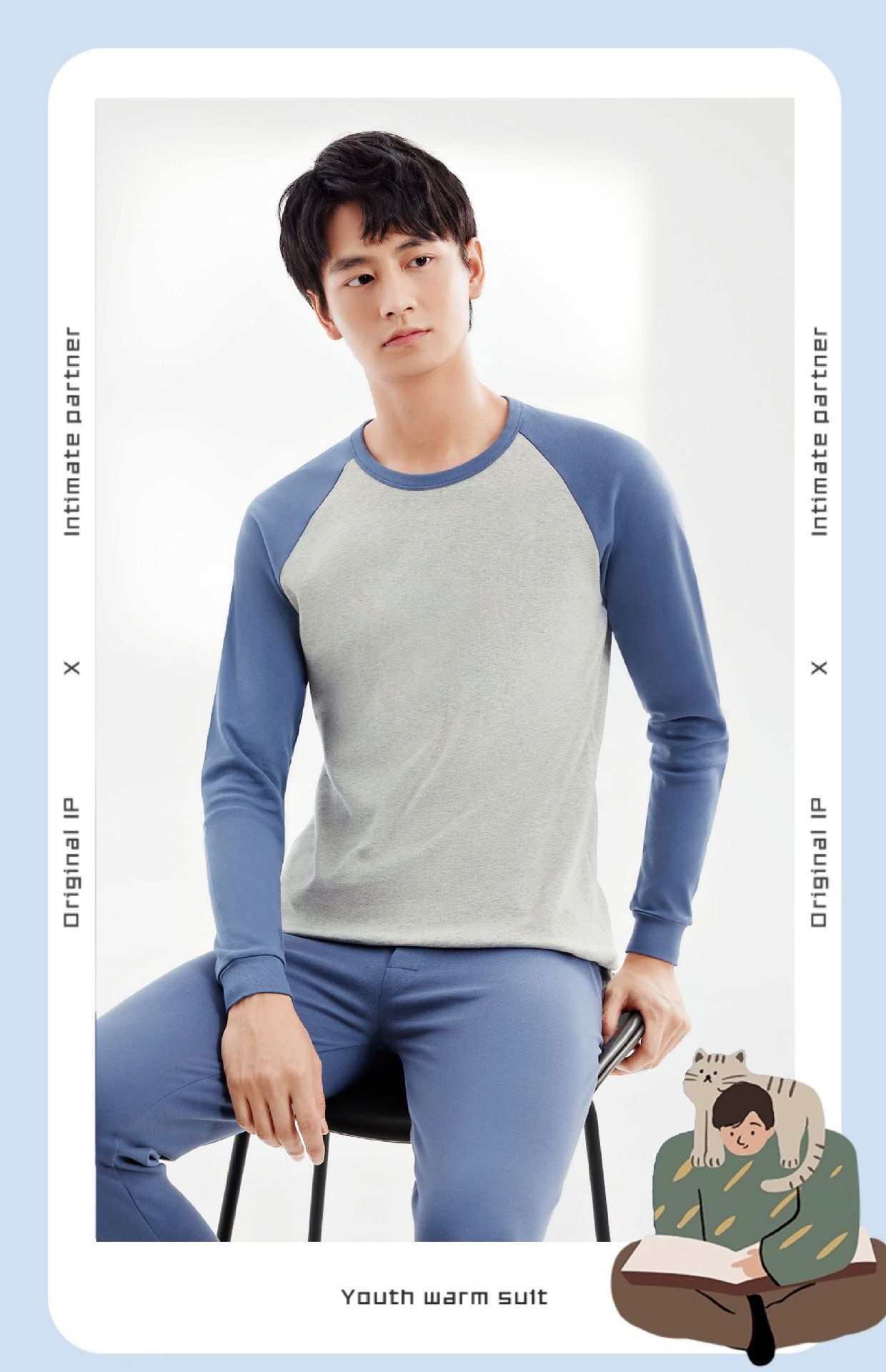 100 Cotton Antibacterial Autumn Top And Bottom Set Mens Thermal Underwear