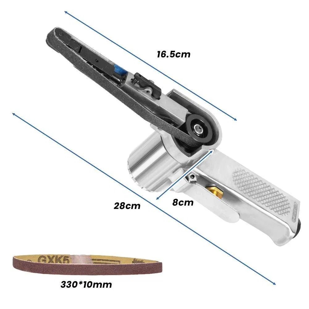 10mm Pneumatic Belt Sander, Lightweight Handheld Air Powered Grinder Polisher With 5 Sanding Belts