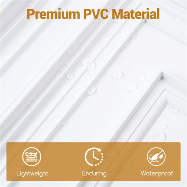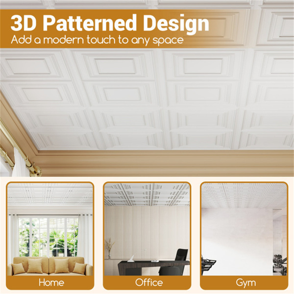 • Built to Last: These drop ceiling tiles are molded from premium PVC, so they stay lightweight and waterproof. Count on these ceiling sheets to keep their like-new finish for years in any busy room.• Modern 3D Texture: The modern raised patterns on each plastic panel turns plain spaces into eye-catching features for homes, offices or gyms. Use these construction tiles as a quick style upgrade that still blends with existing decoration.