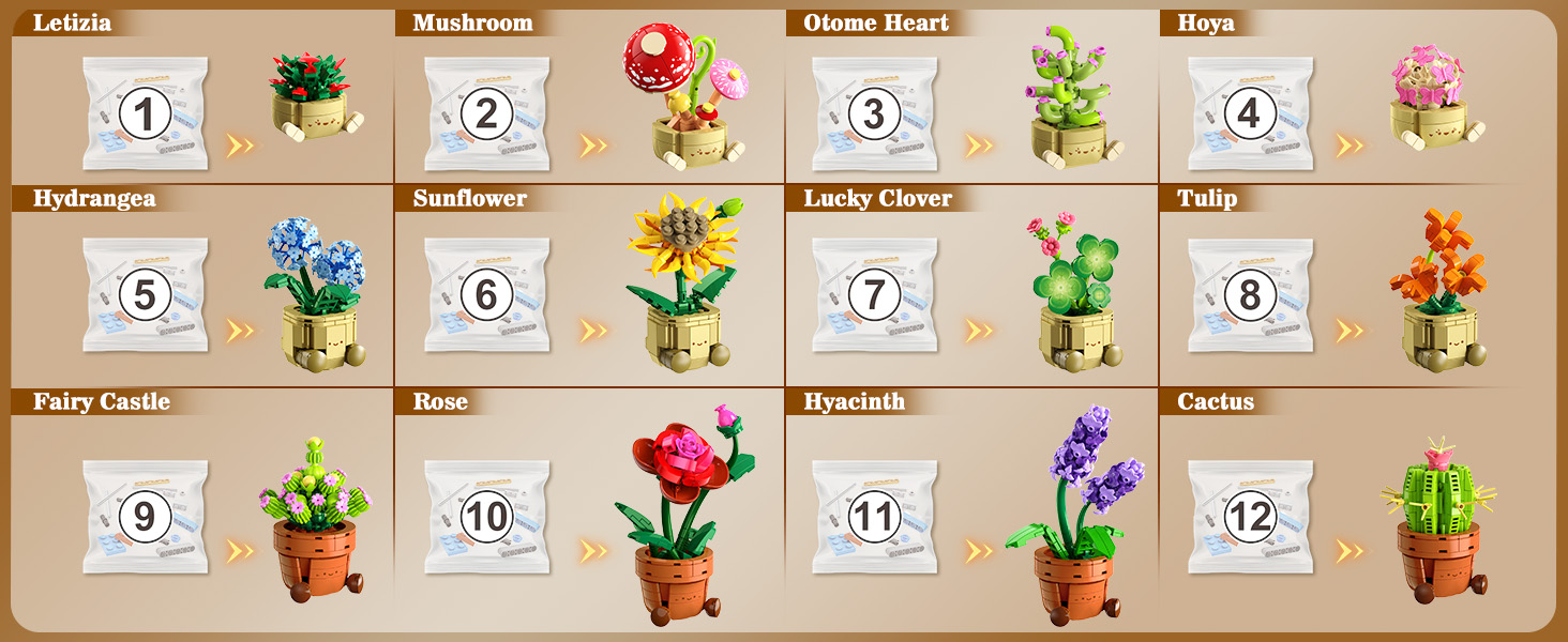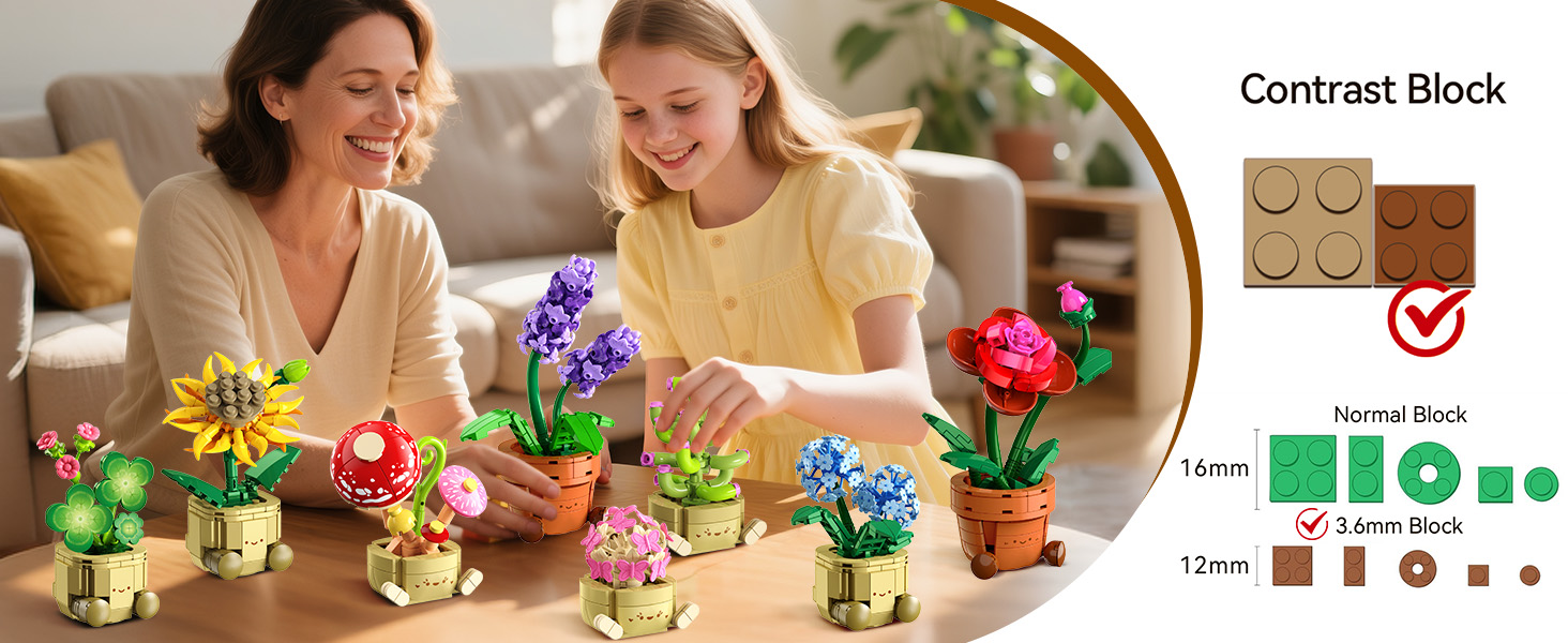 Please note: These are 3.6mm mini bricks and are not compatible with major brands. 12 Pack Flowers Building Set - The 12 Pack Botanical Flower Building Toy features 12 unique mini botanical pla...