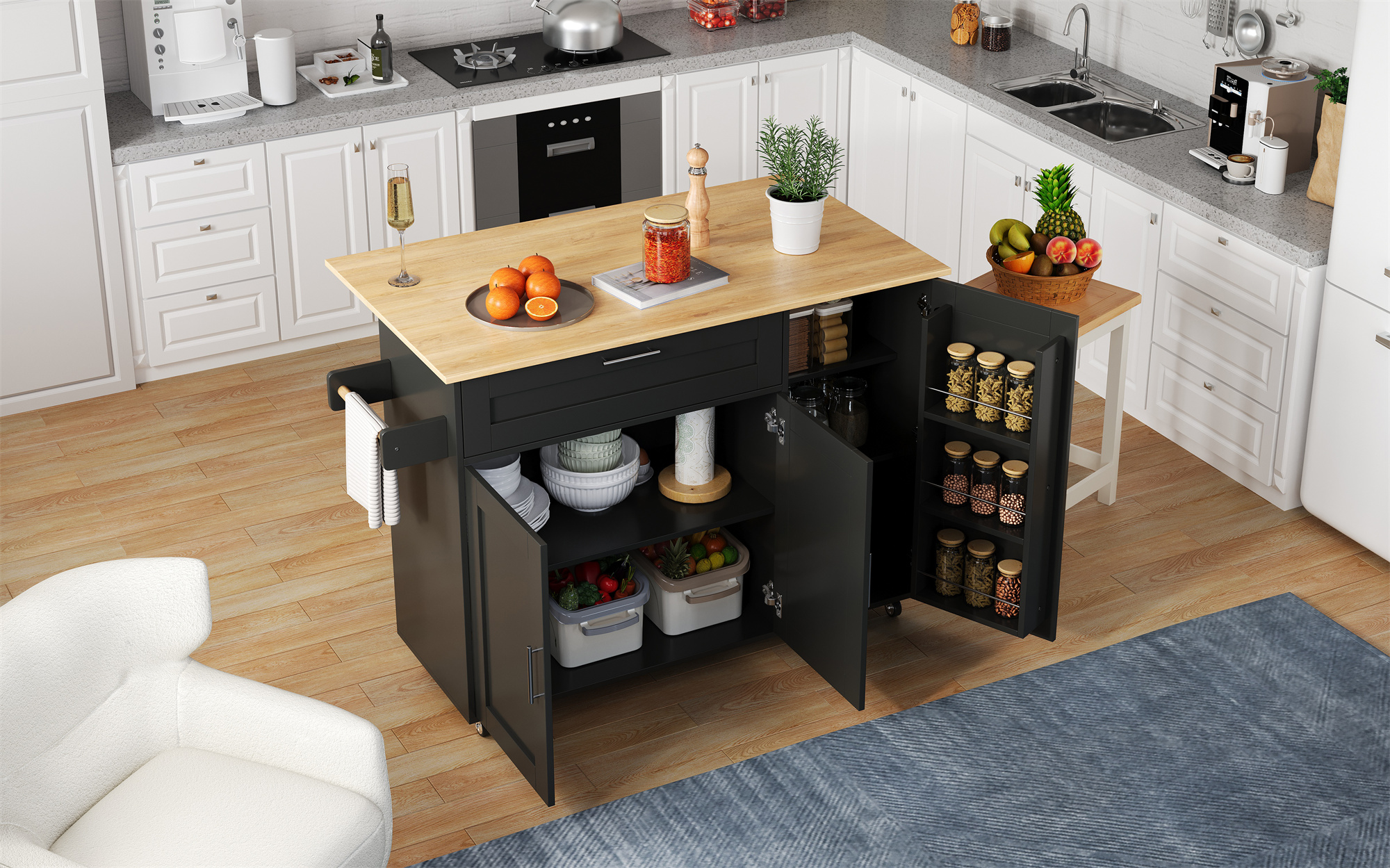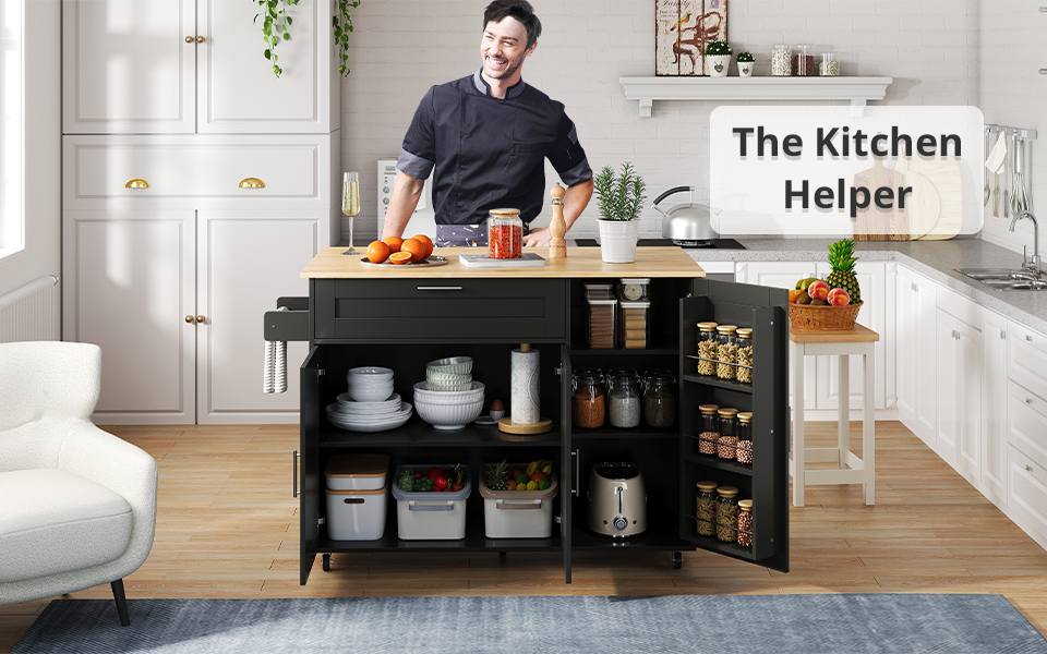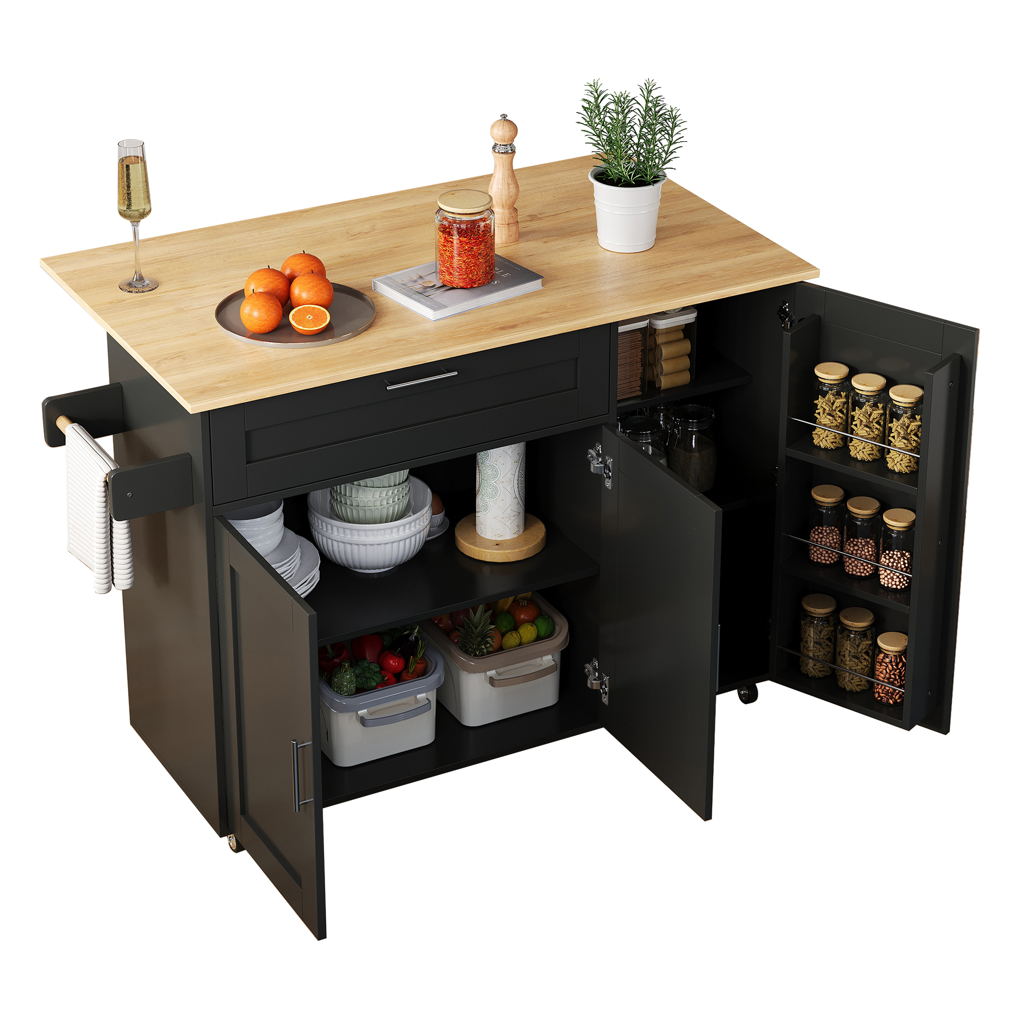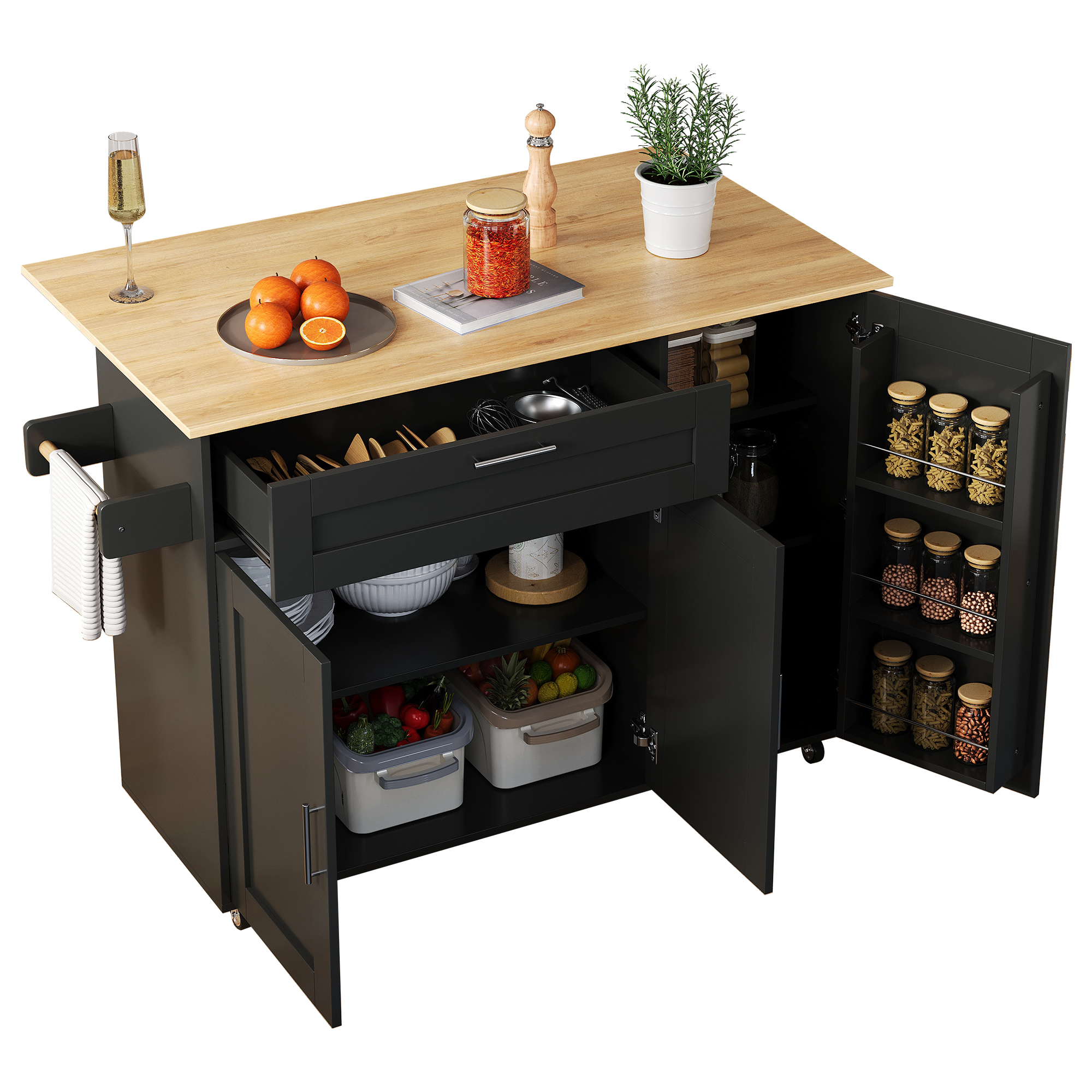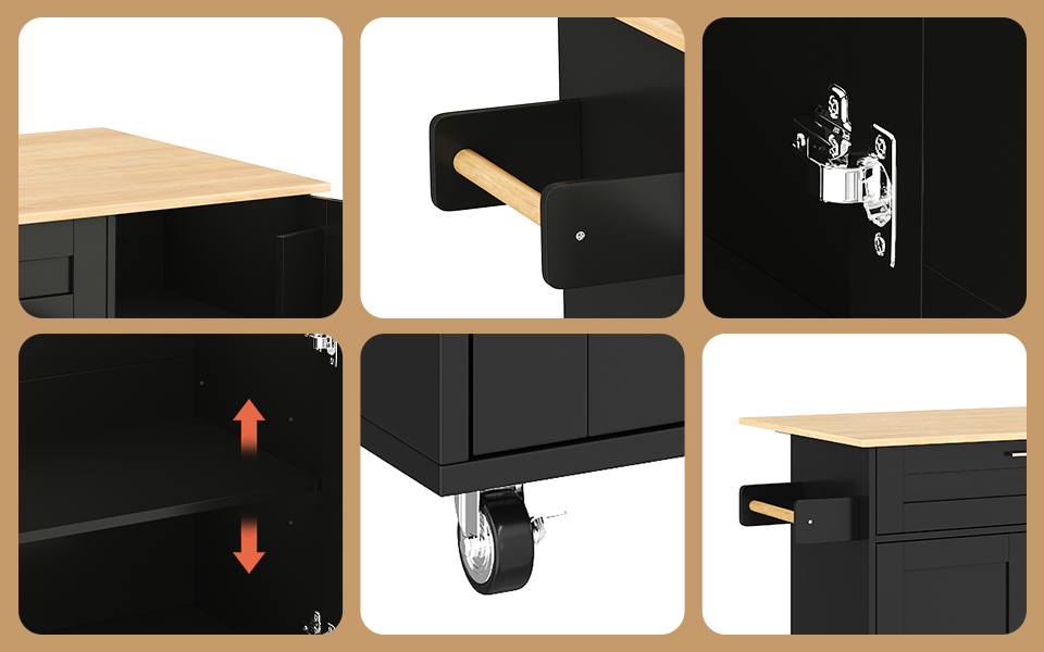 SpecificationProduct InformationItem Code:N890P39980304BProduct Type :Combo ItemProduct Name:132.5*44(70)*90cm Kitchen Island on Wheels, Rolling Storage Trolley with Foldable Tabletop, multifunctional...