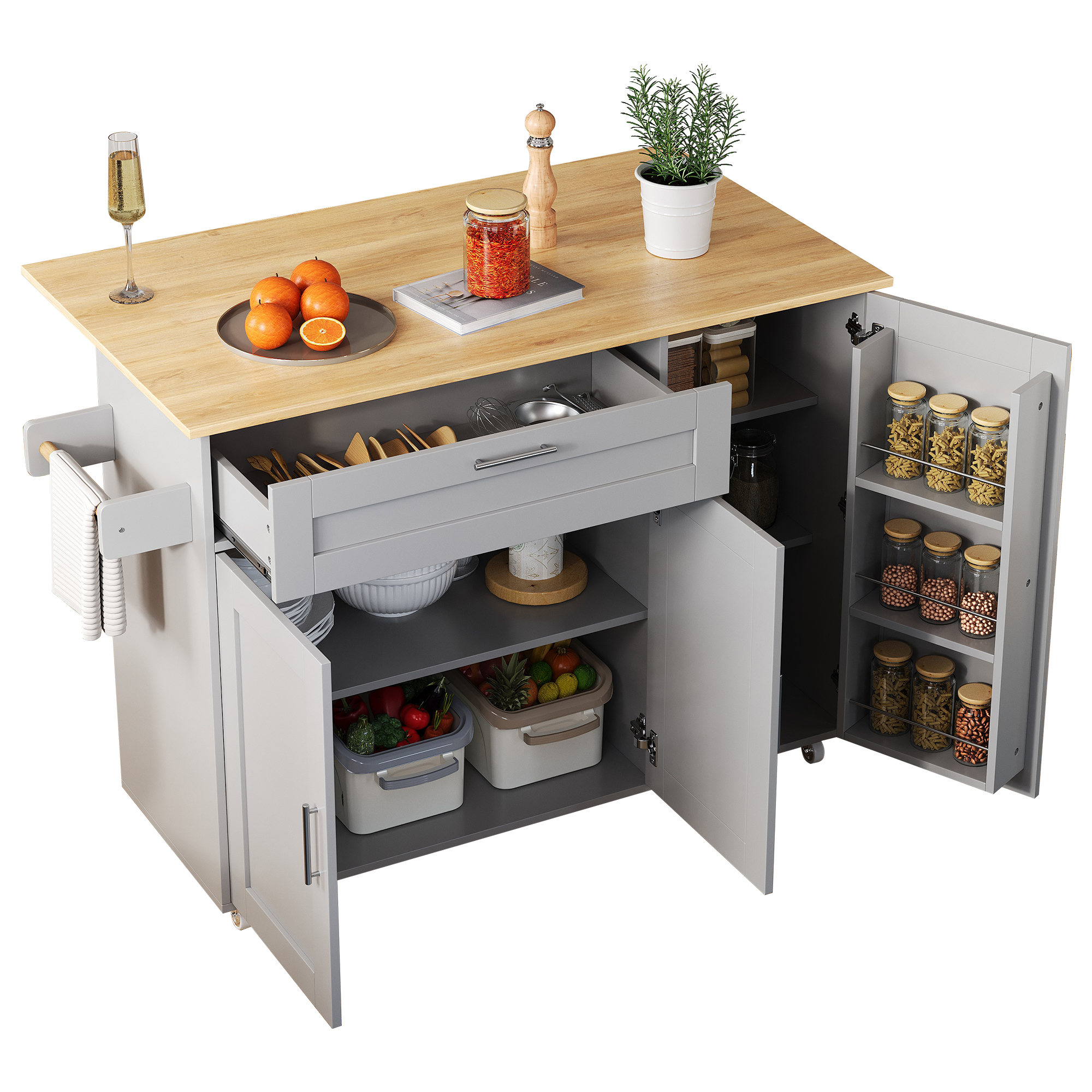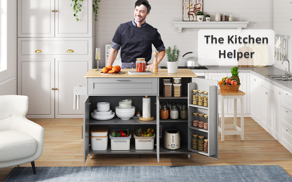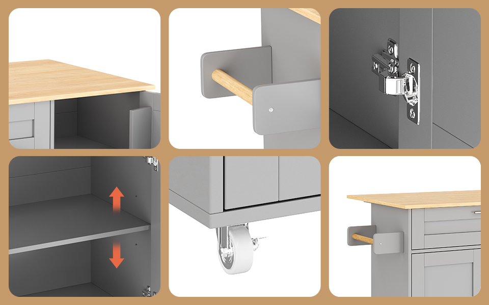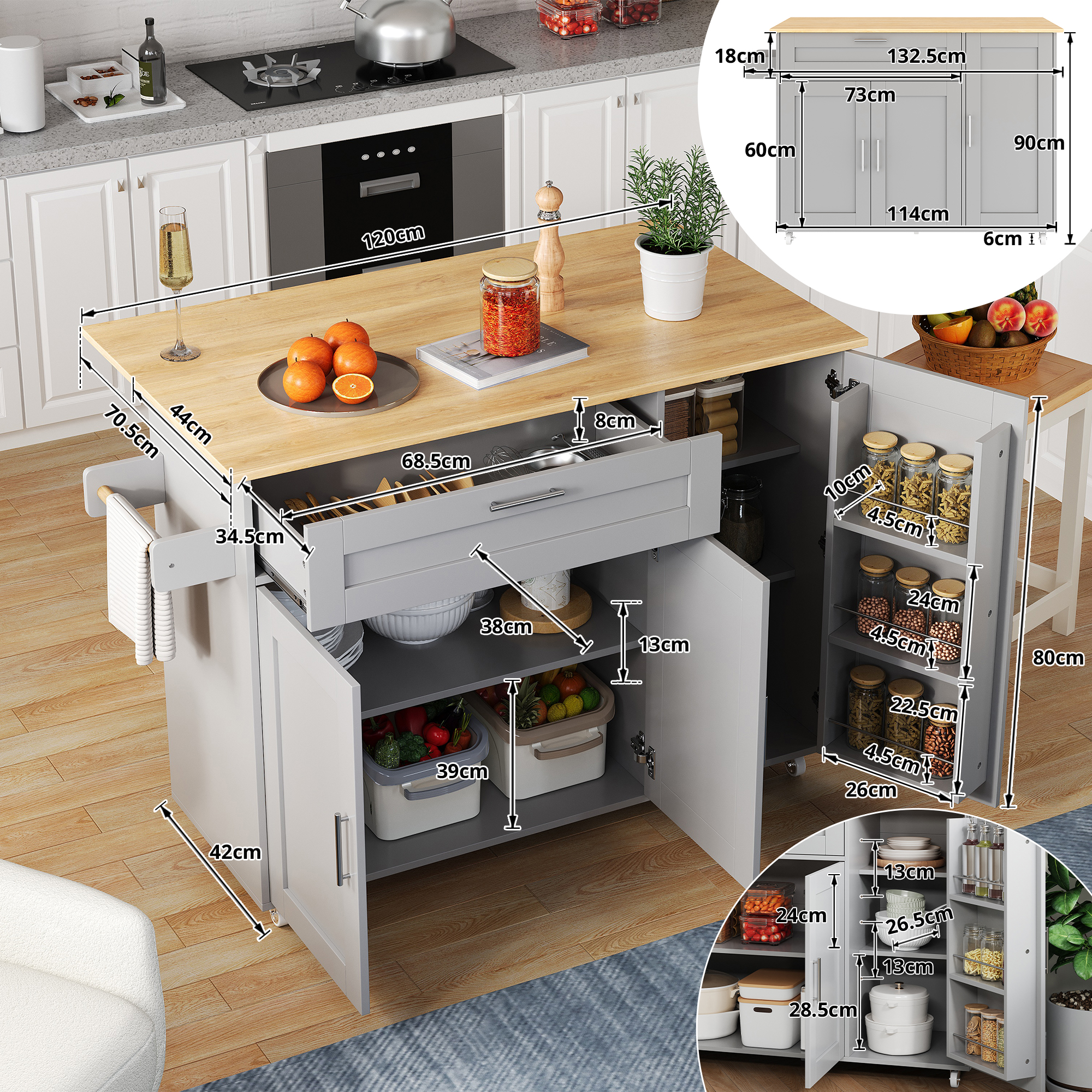 SpecificationProduct InformationUPC:N890P39980304GProduct Type :Combo ItemProduct Name:132.5*44(70)*90cm Kitchen Island on Wheels, Rolling Storage Trolley with Foldable Tabletop, multifunctional cabin...