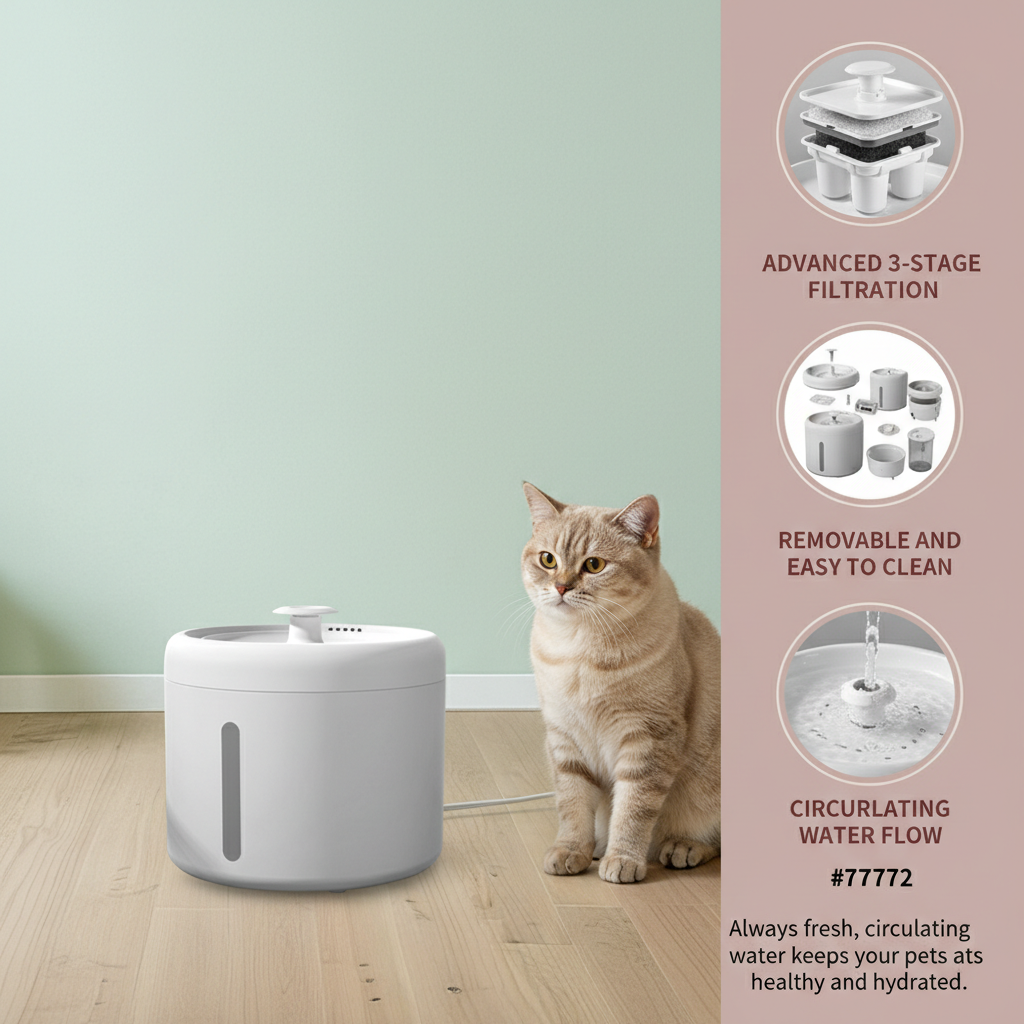 2000ML Automatic Pet Water Fountain, USB Powered Ultra Quiet Circulating Water Dispenser With Side Visible Water Level Window, BPA-Free Fresh Running Water Drinking Bowl For Indoor Cats And Small D
