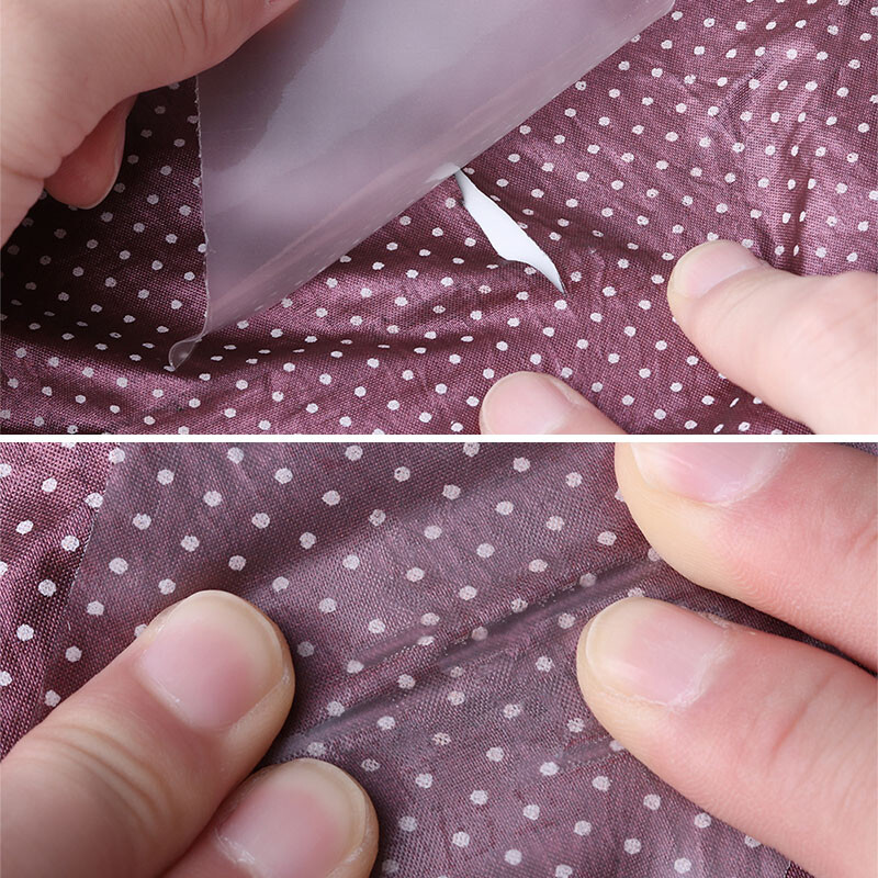 Peel off backing paper and apply the patch directly on top of the damage, keeping it as flat as possible to ensure there are no wrinkles