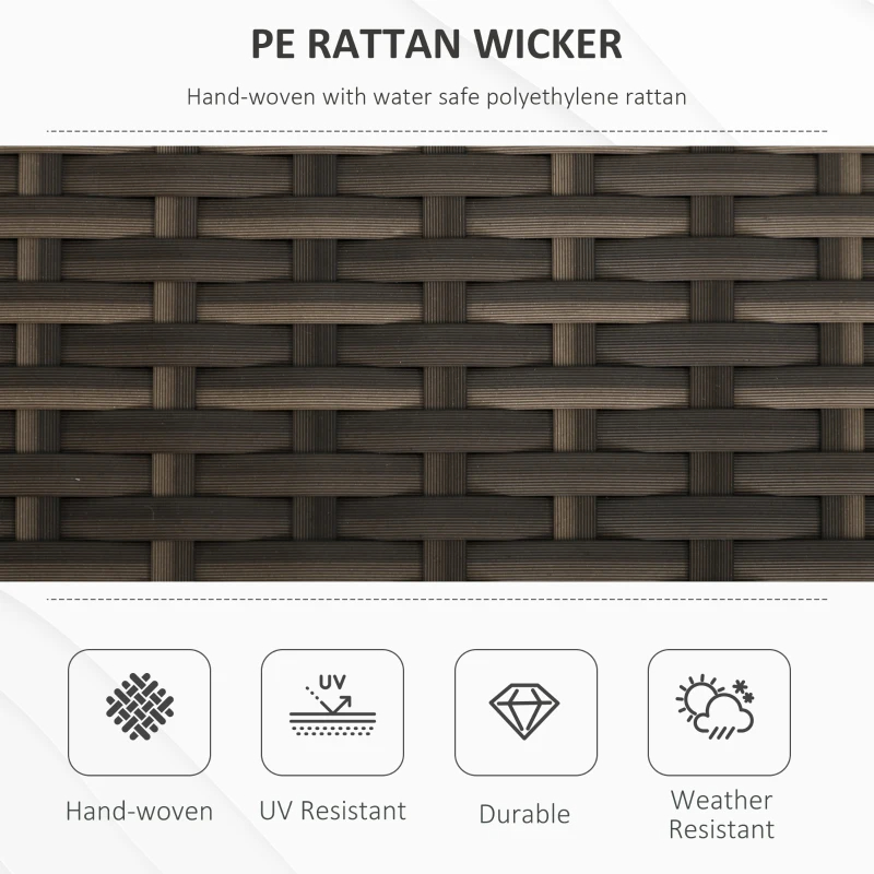 - - Outdoor-ready hand-woven PE rattan wicker, reinforced with a strong, powder-coated steel frame
