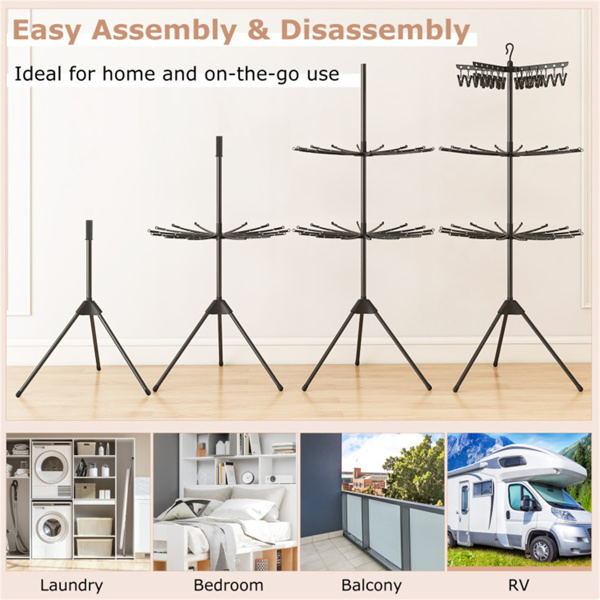 • Sturdy Construction: The bottom tripod support made of solid metal tubes provides enhanced stability to accommodate a full load of laundry without tipping. Plus, the rods of this drying rack are equipped with windproof buckles to prevent towels from falling.