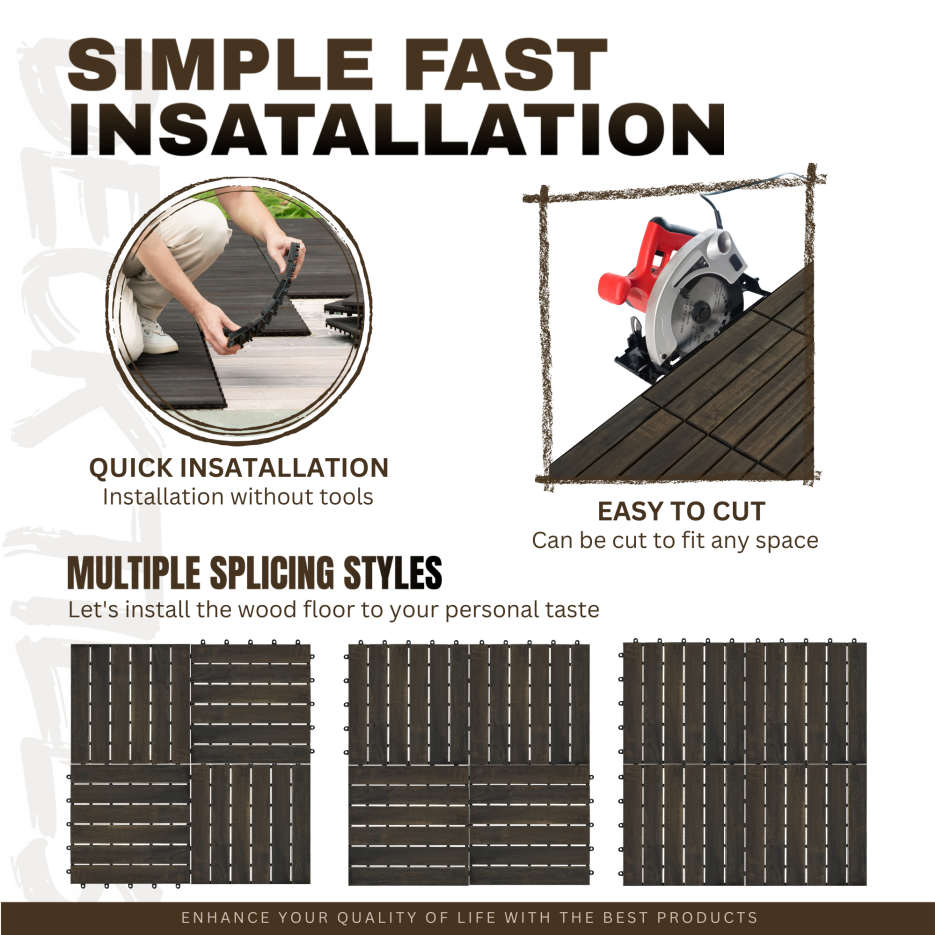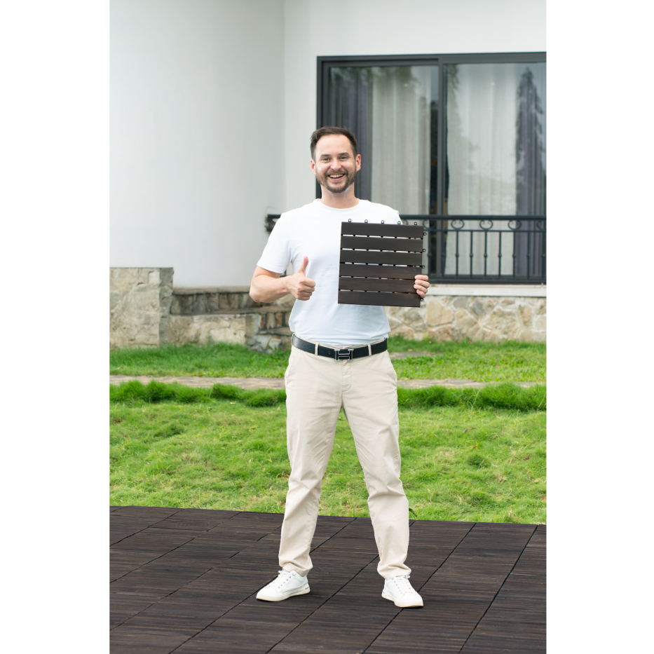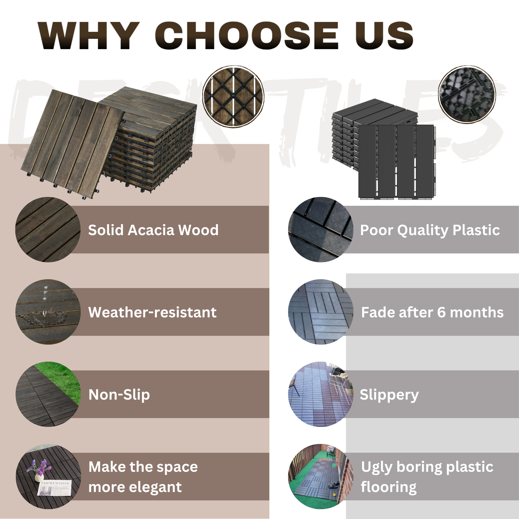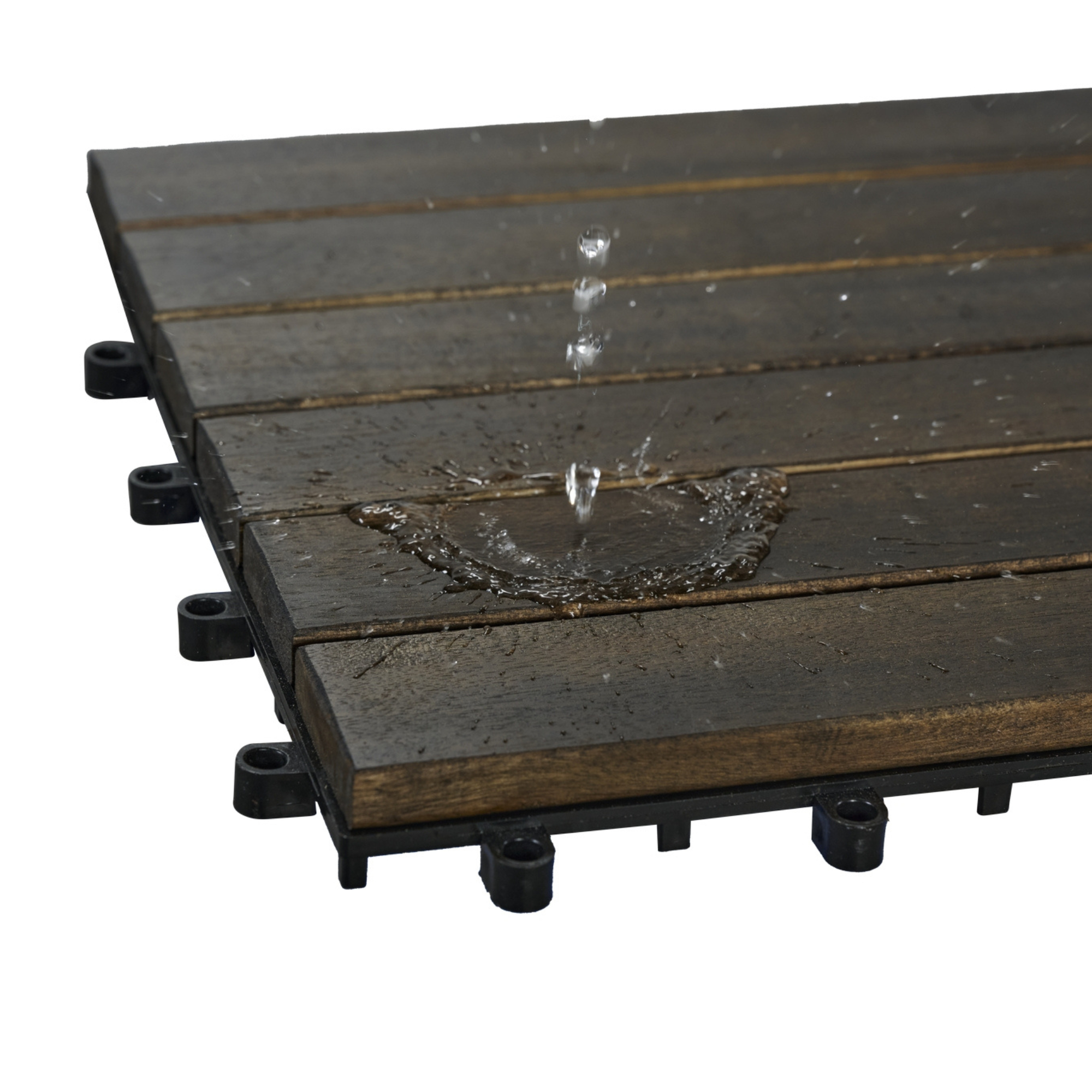 Product Name:30 PCS Interlocking Deck Tiles Striped Pattern, 12" x 12" Dark Brown Square Acacia Hardwood Outdoor Flooring for Patio, Bancony, Pool Side,...