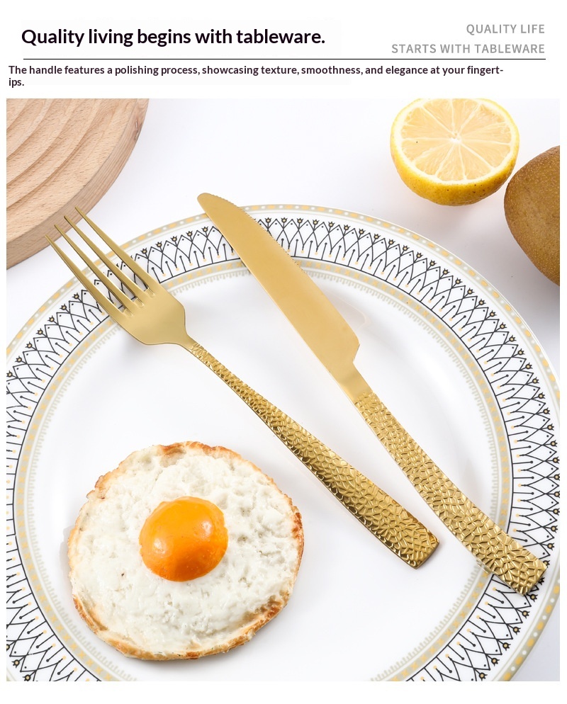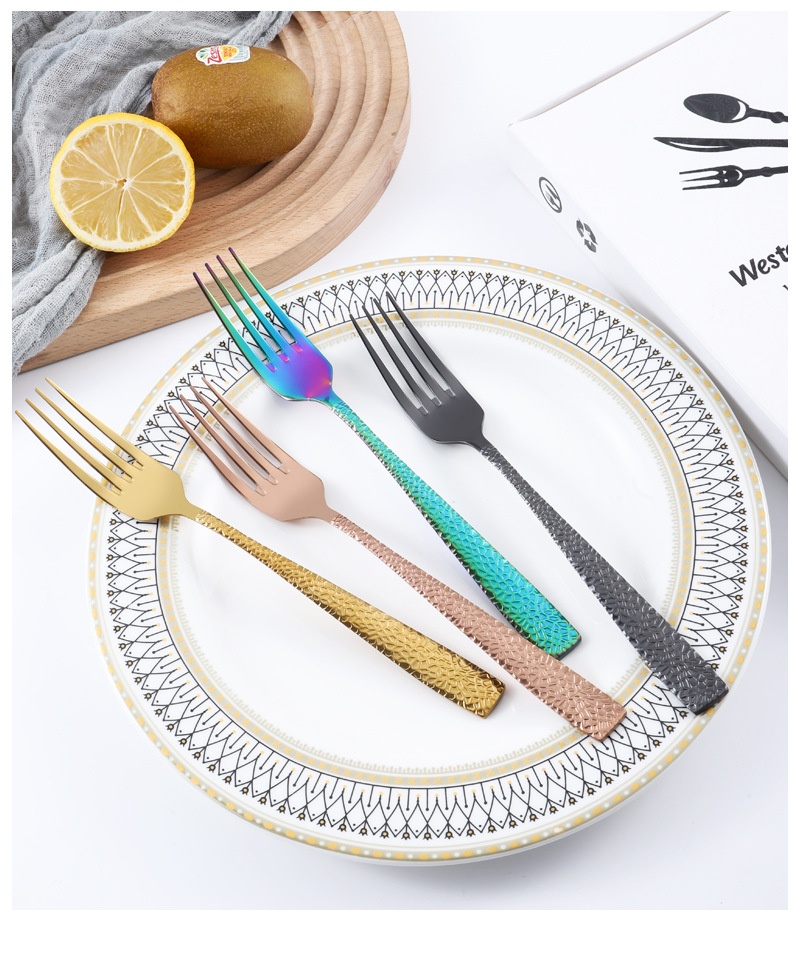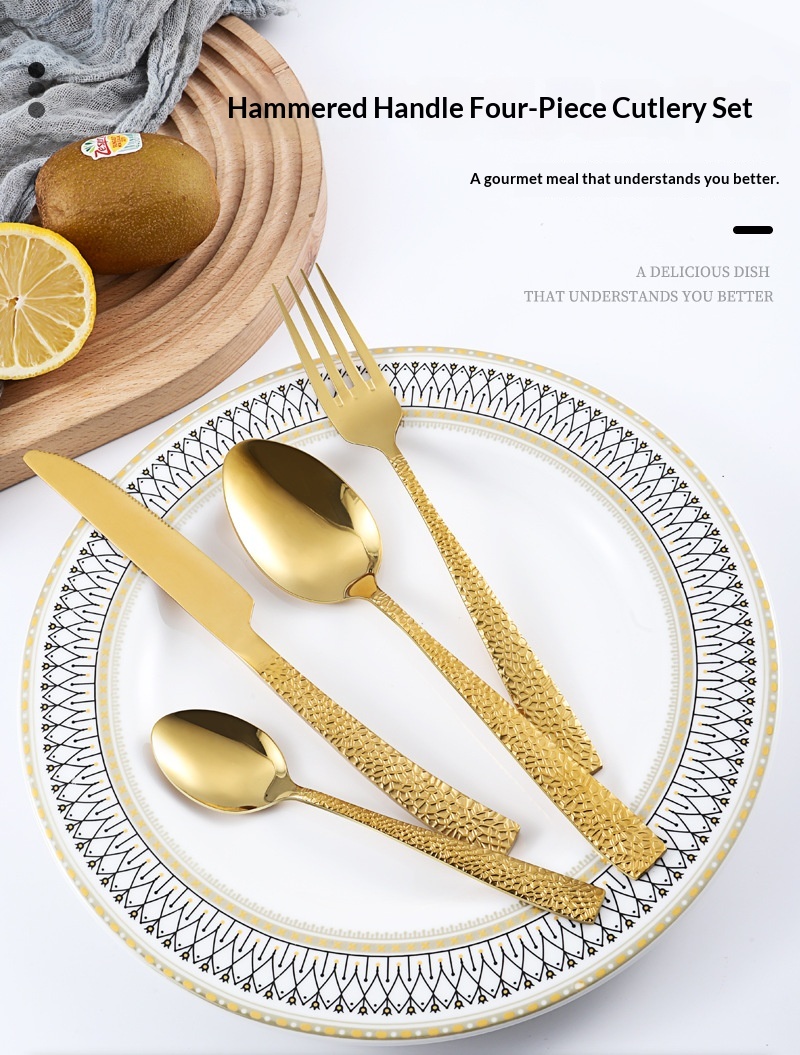 4-piece Stainless Steel Cutlery Set With Hammered-handle Spoons
