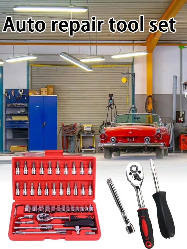 46-Piece 1/4" Drive Socket Set With Ratchet Wrench & Screwdriver Bits, 3-Pack Promotional Value, All-Purpose Hand Tool Kit For Automotive & Home Repair