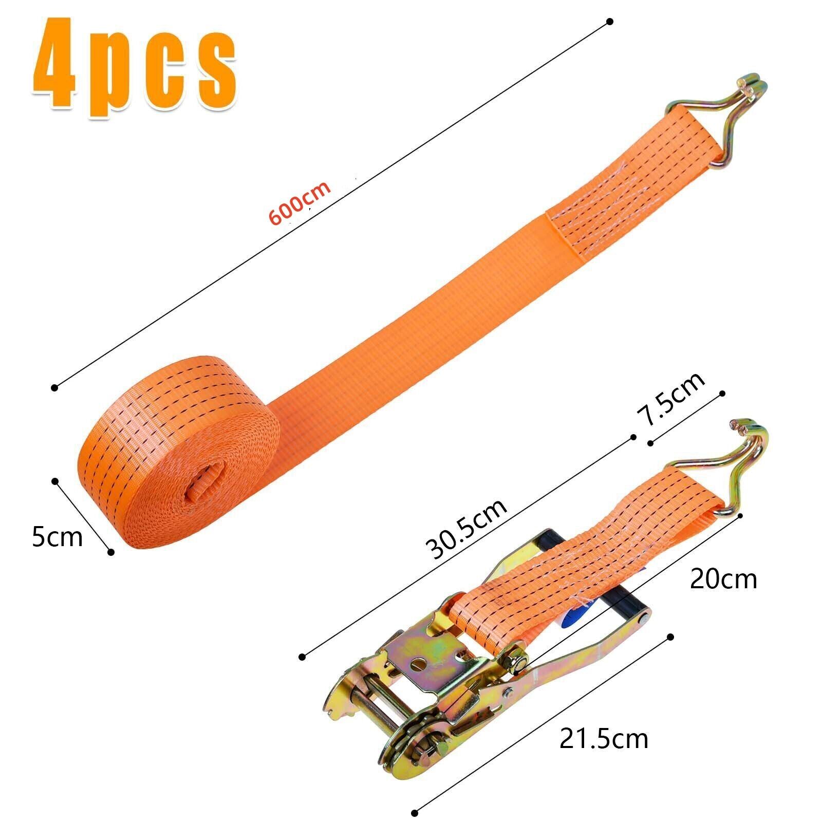 4X Heavy Duty Ratchet Ties Down Straps 50mm-6 Meter Lashing Cargo Luggage 3000KG