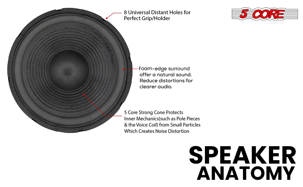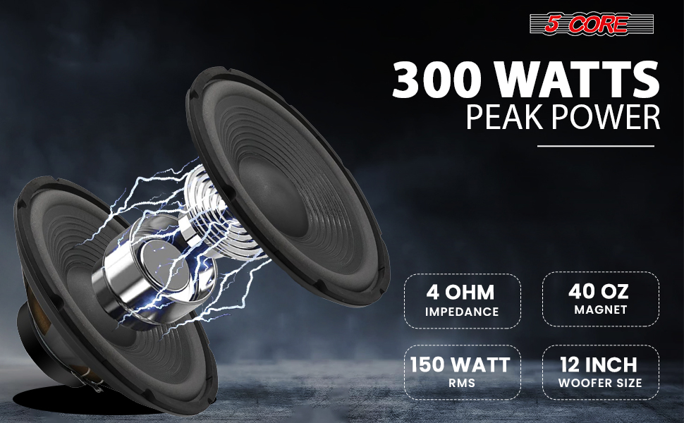 5 Core 12 Inch Car Woofer Audio 300W 4Ohm Deep Bass Replacement Sub Woofer Component Loud Speaker