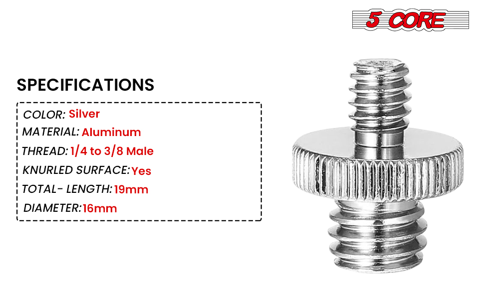 UPC:810099498196Brand:5 CoreAvailable Ship to:Puerto Rico,United StatesDetails 3/8 to 1/4 adapter Description Upgrade your photography gear with our 1/4 inch male to...